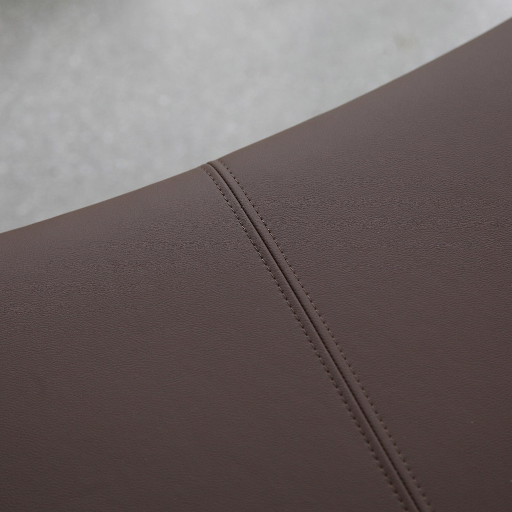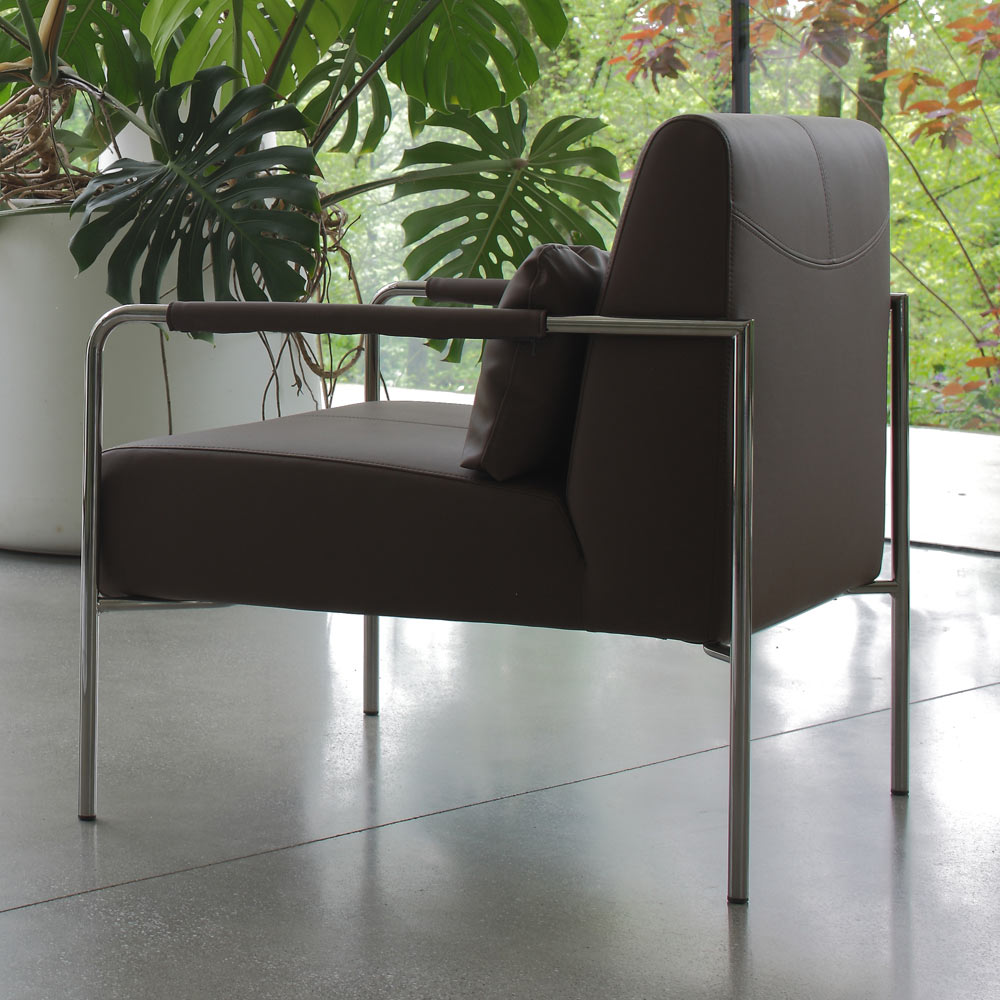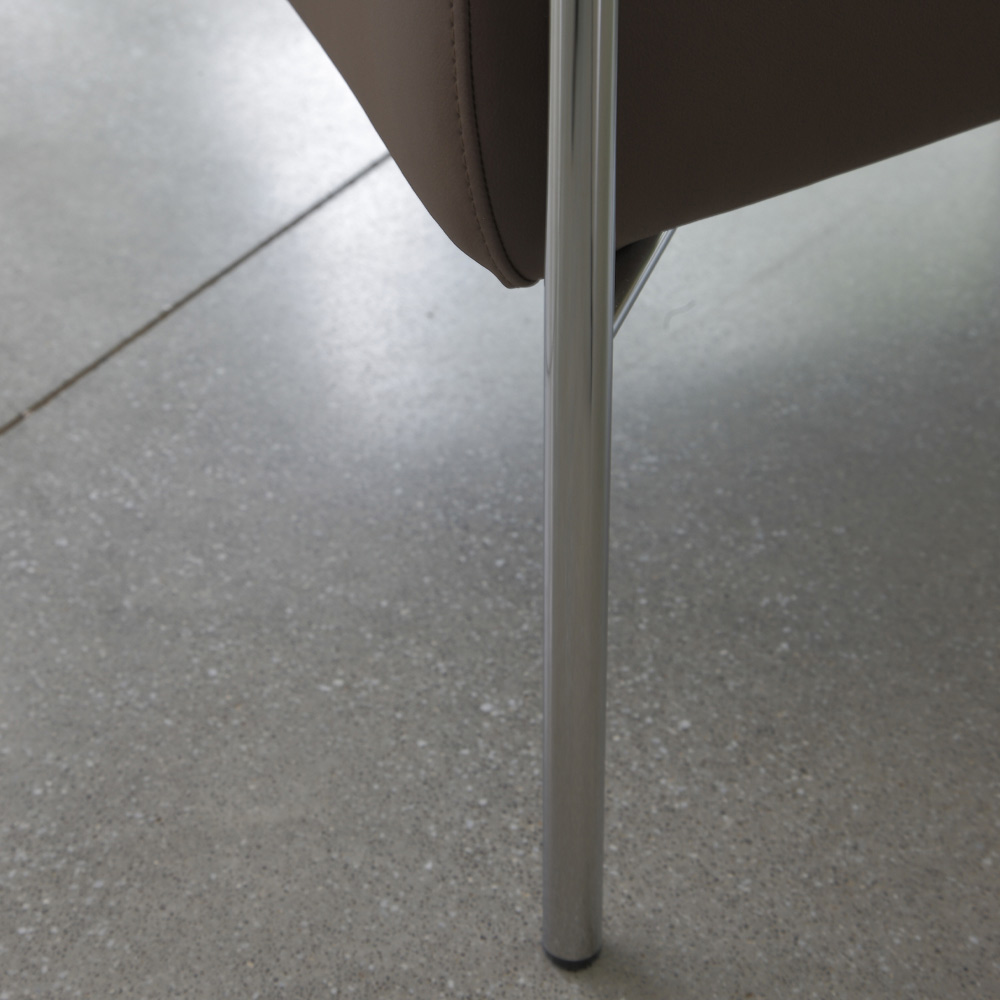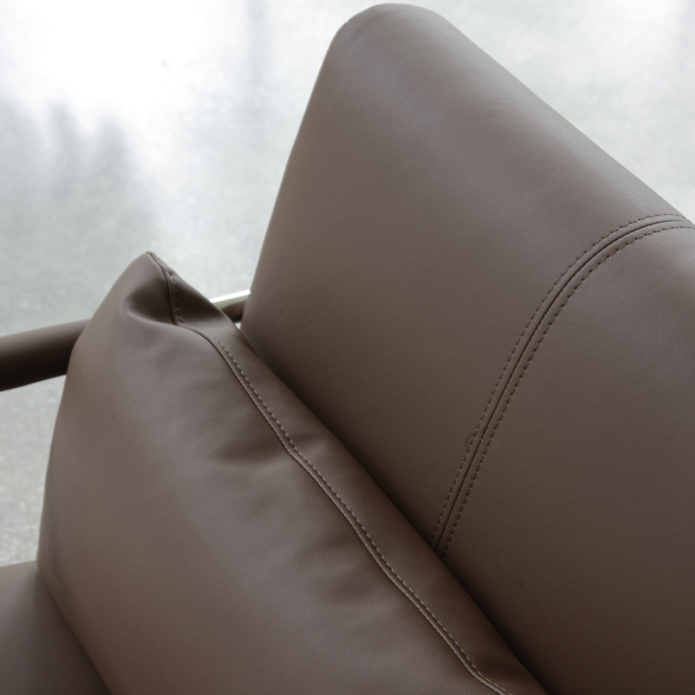 base de cromo pulido, asiento de ecopiel marrón