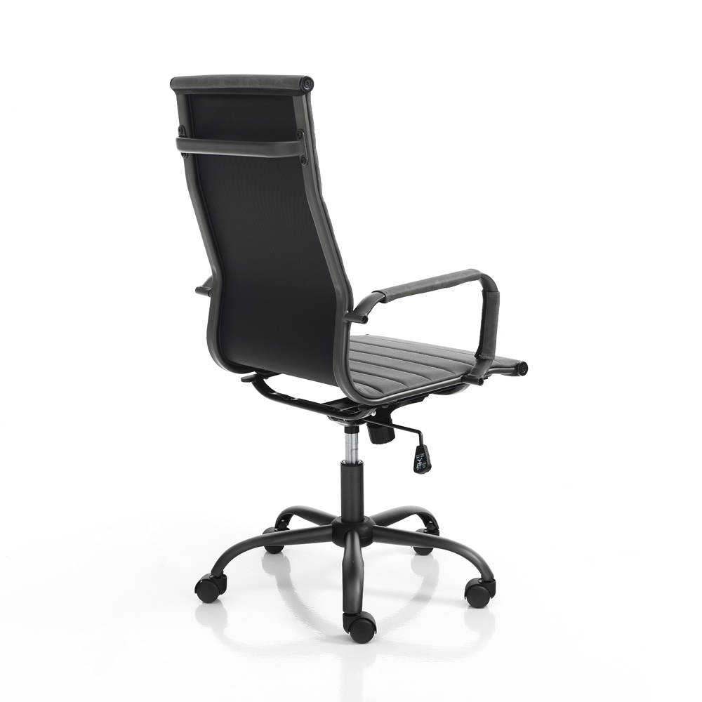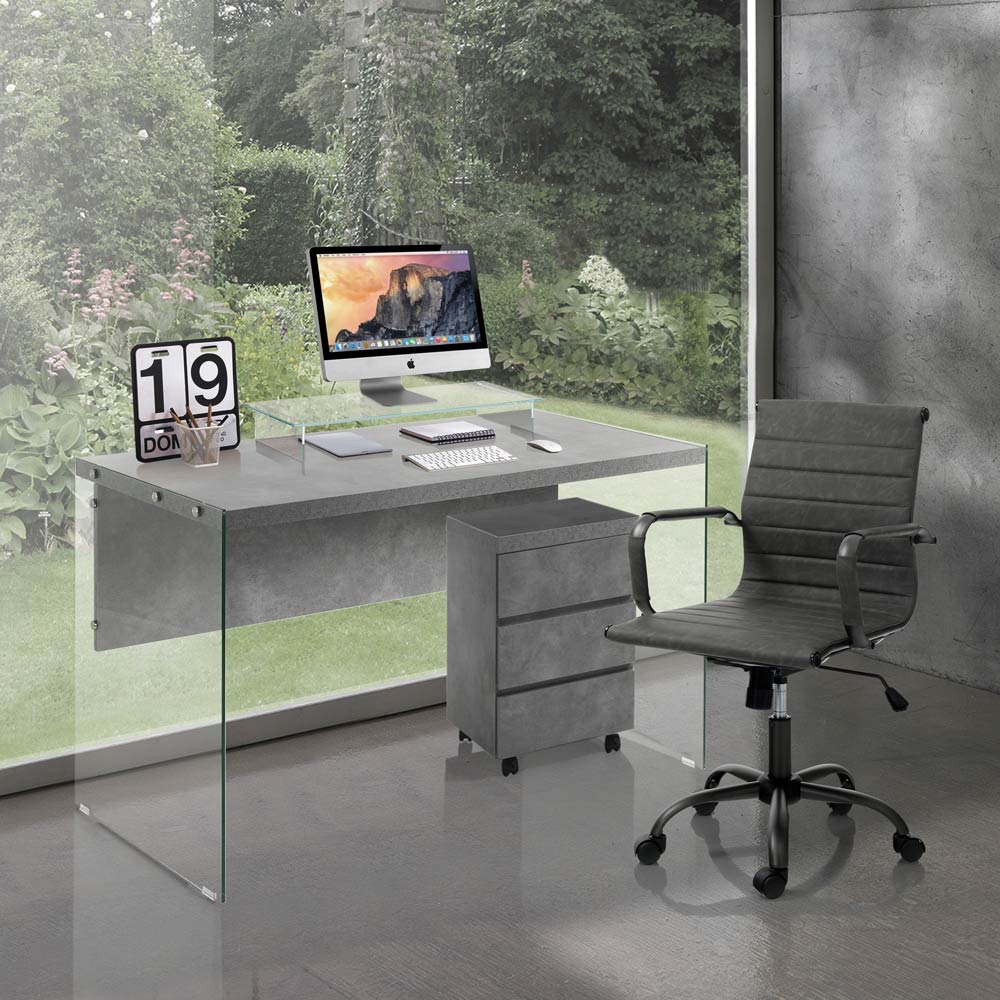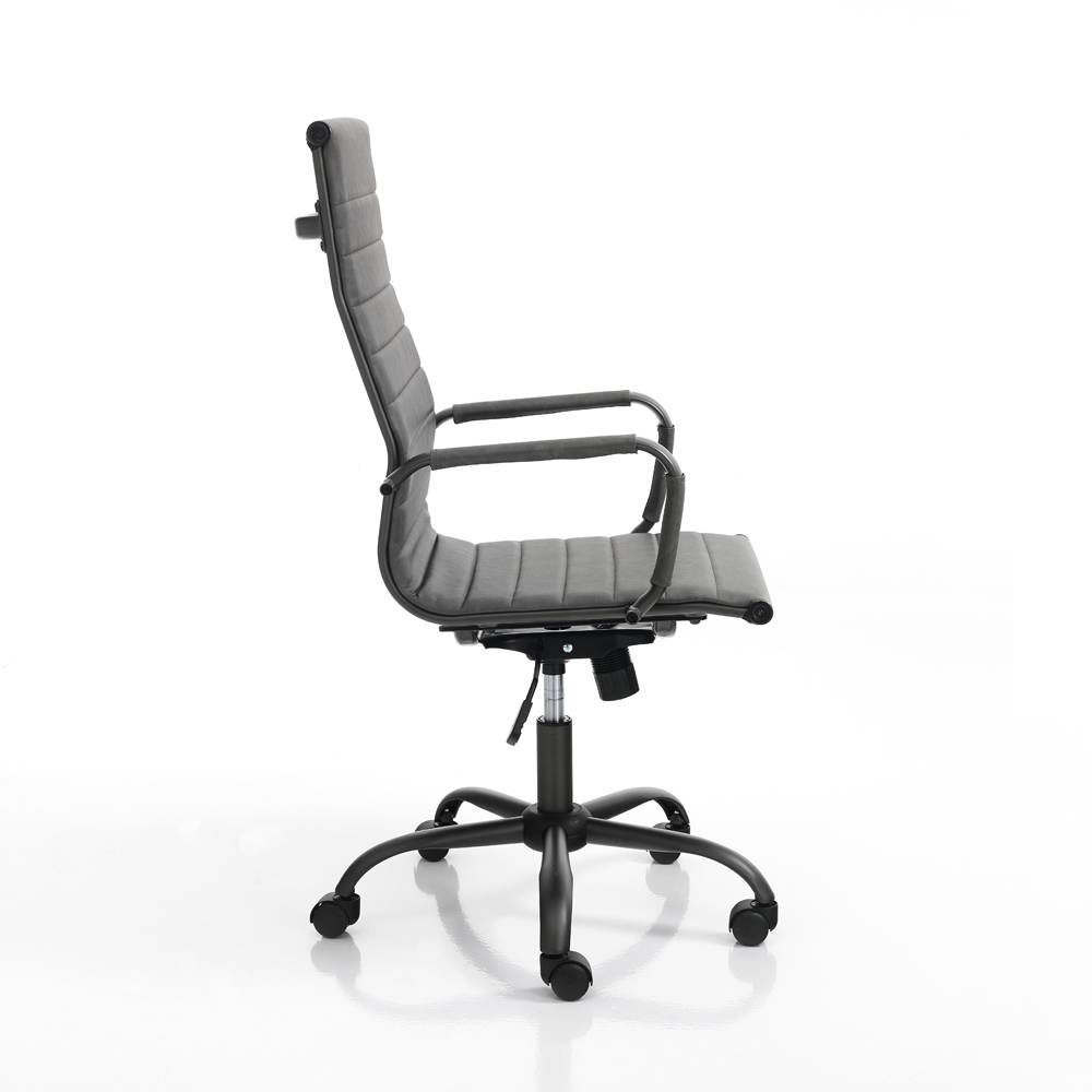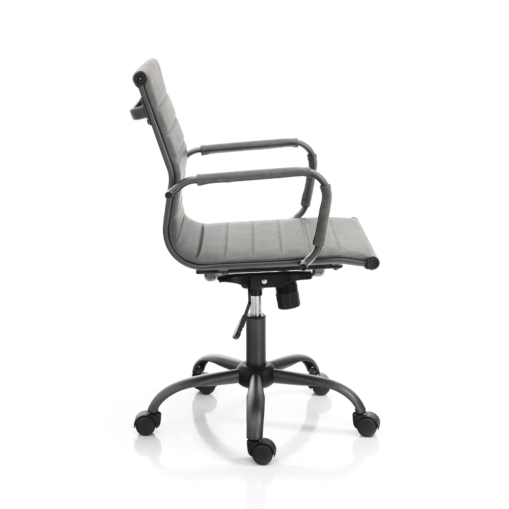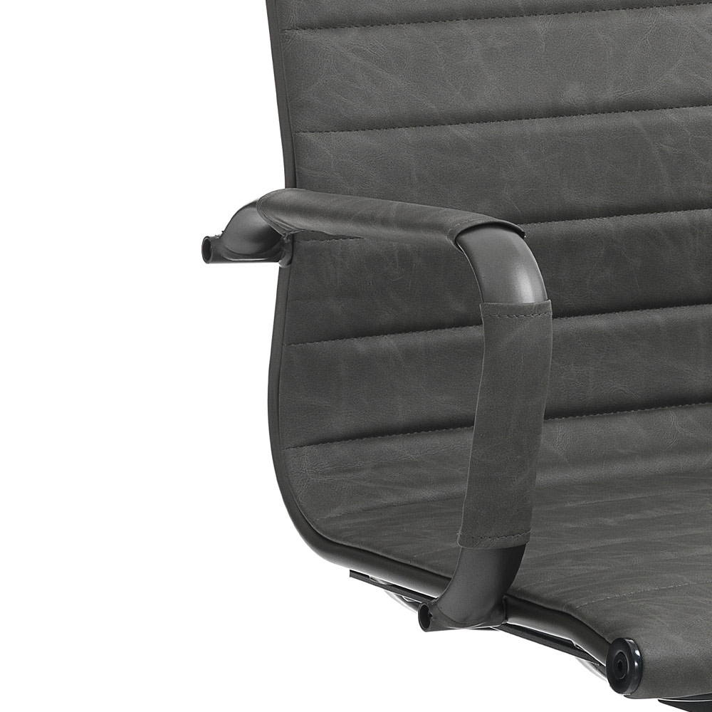 Sillón realizado con asiento tapizado en polipiel gris efecto envejecido , estructura y base en estrella de acero pintado bronce , elevador de gas regulable en altura y ruedas giratorias, íntegramente . Este artículo garantiza un asiento suave y envolvente , fácil movimiento gracias a las ruedas y toda la calidad. Es perfecto para usar en oficinas de trabajo pero también en escritorios domésticos, aportando a la estancia un ambiente profesional y moderno.
