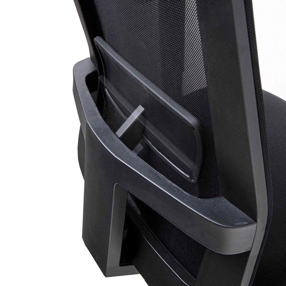 Sillón ejecutivo giratorio con elevador de gas en tejido técnico negro.