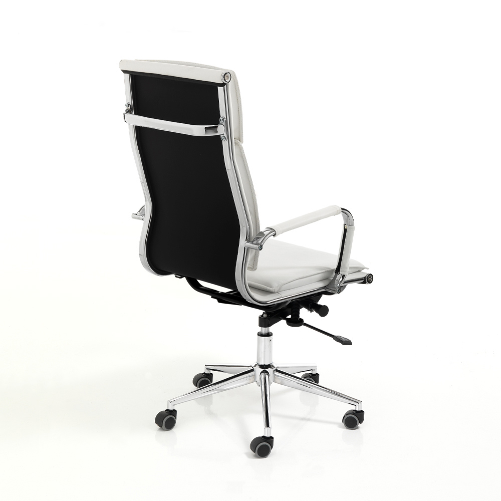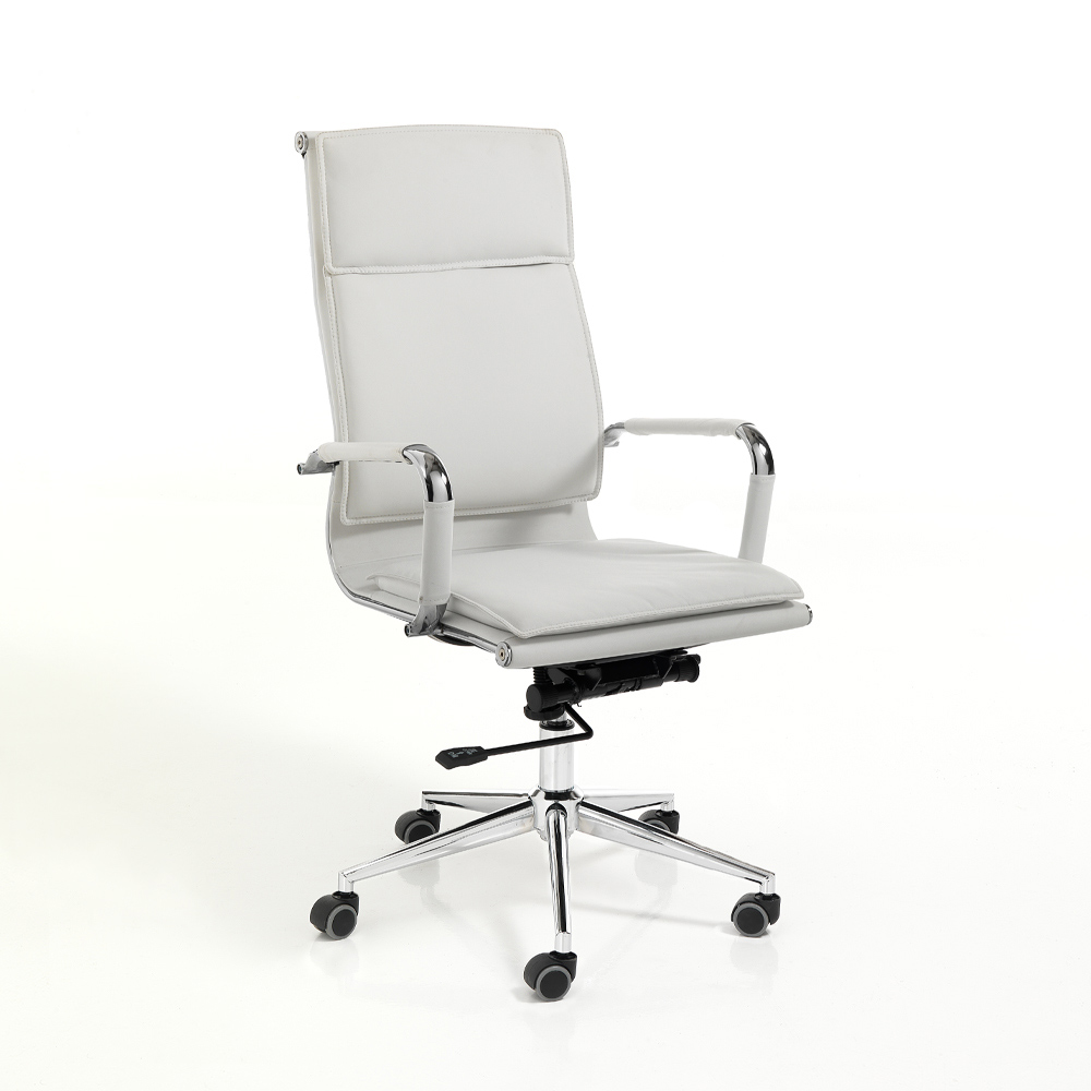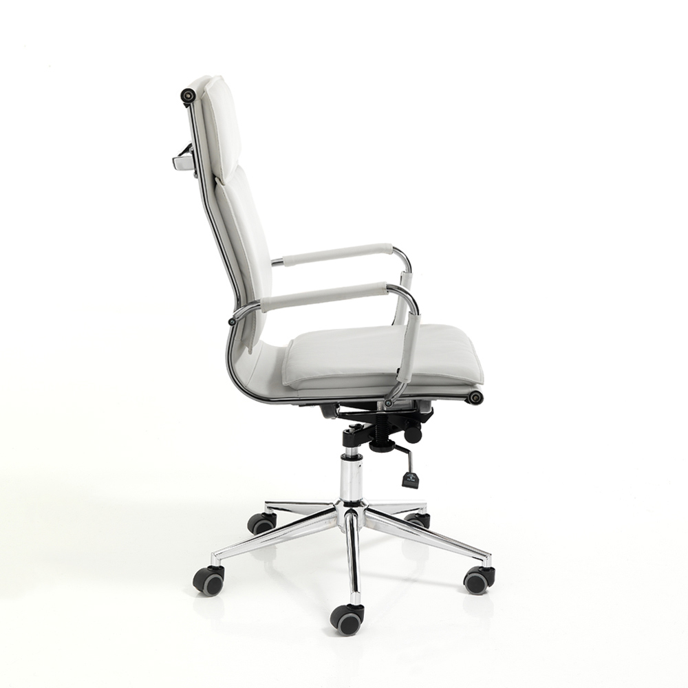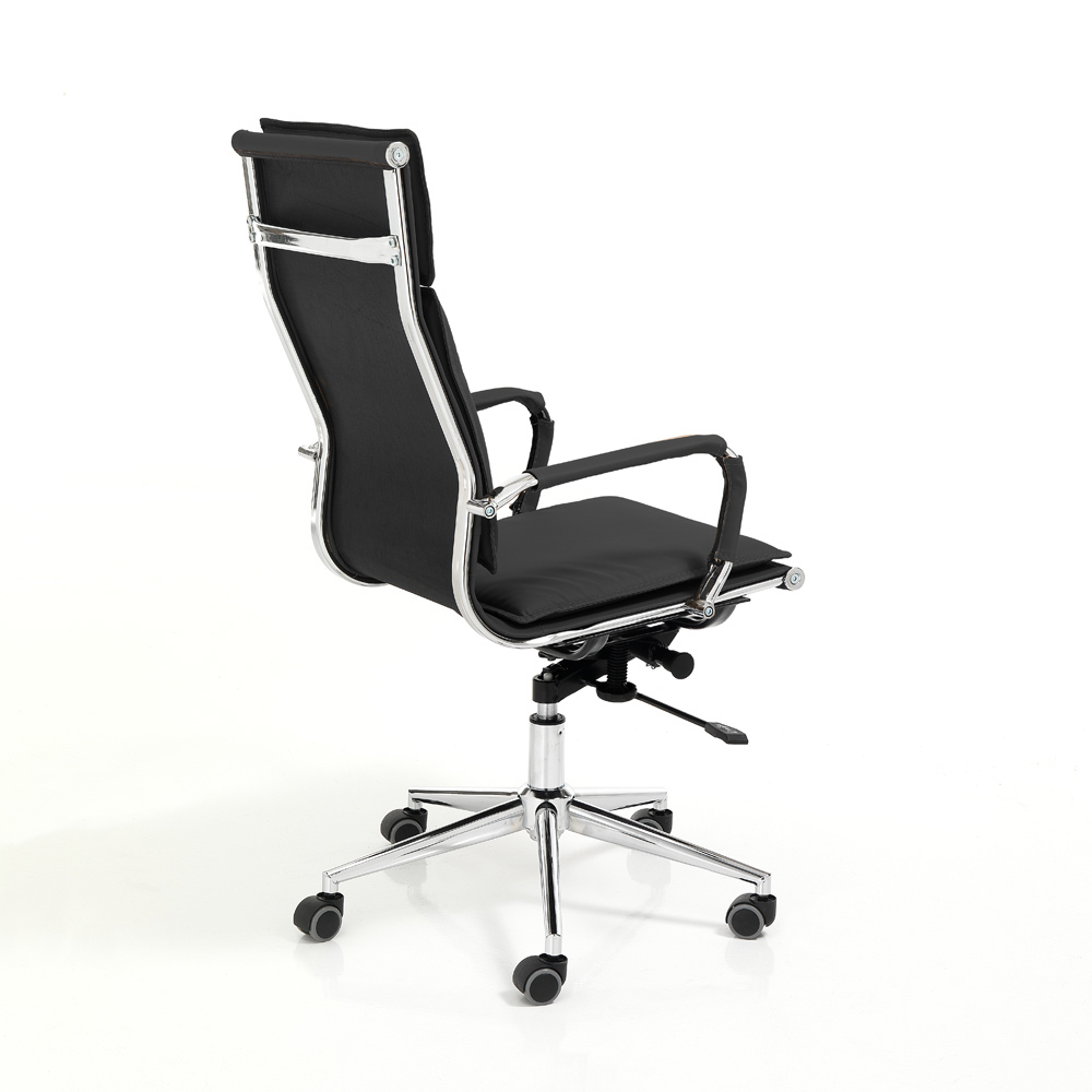Sillón realizado con asiento tapizado en polipiel , base en forma de estrella en metal cromado , elevación a gas regulable en altura y ruedas giratorias, íntegramente . Este artículo garantiza un asiento suave y envolvente , fácil movimiento gracias a las ruedas y toda la calidad. Es perfecto para usar en oficinas de trabajo pero también en escritorios domésticos, aportando a la estancia un ambiente profesional y moderno.