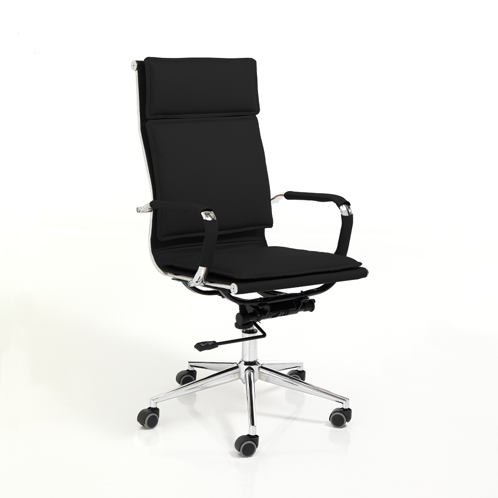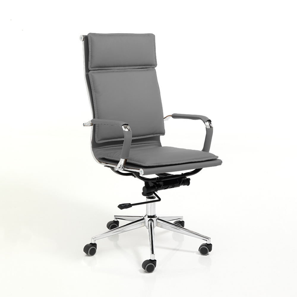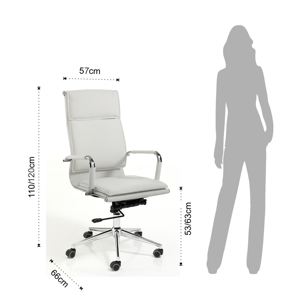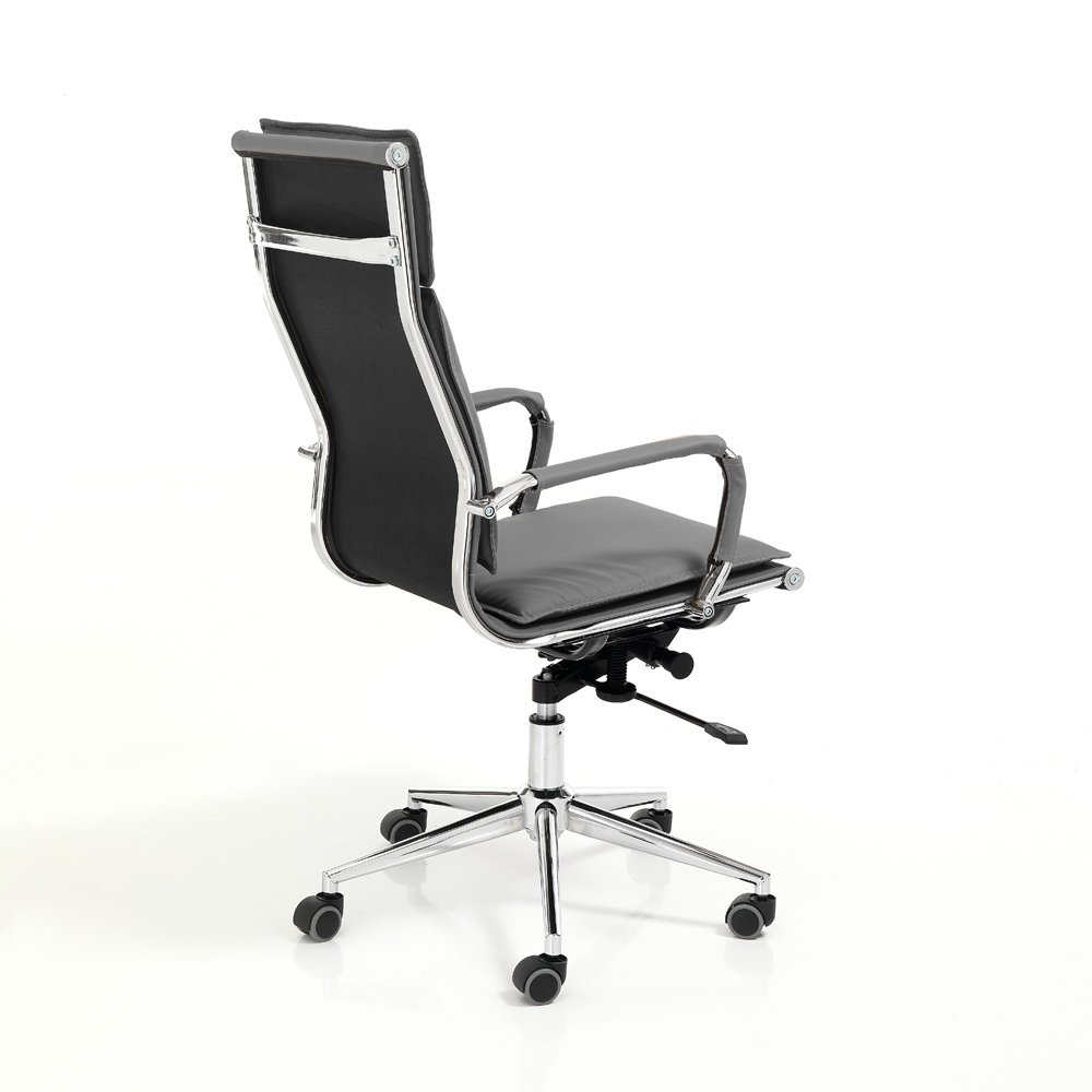 Sillón realizado con asiento tapizado en polipiel , base en forma de estrella en metal cromado , elevación a gas regulable en altura y ruedas giratorias, íntegramente . Este artículo garantiza un asiento suave y envolvente , fácil movimiento gracias a las ruedas y toda la calidad. Es perfecto para usar en oficinas de trabajo pero también en escritorios domésticos, aportando a la estancia un ambiente profesional y moderno.