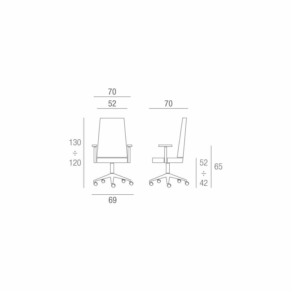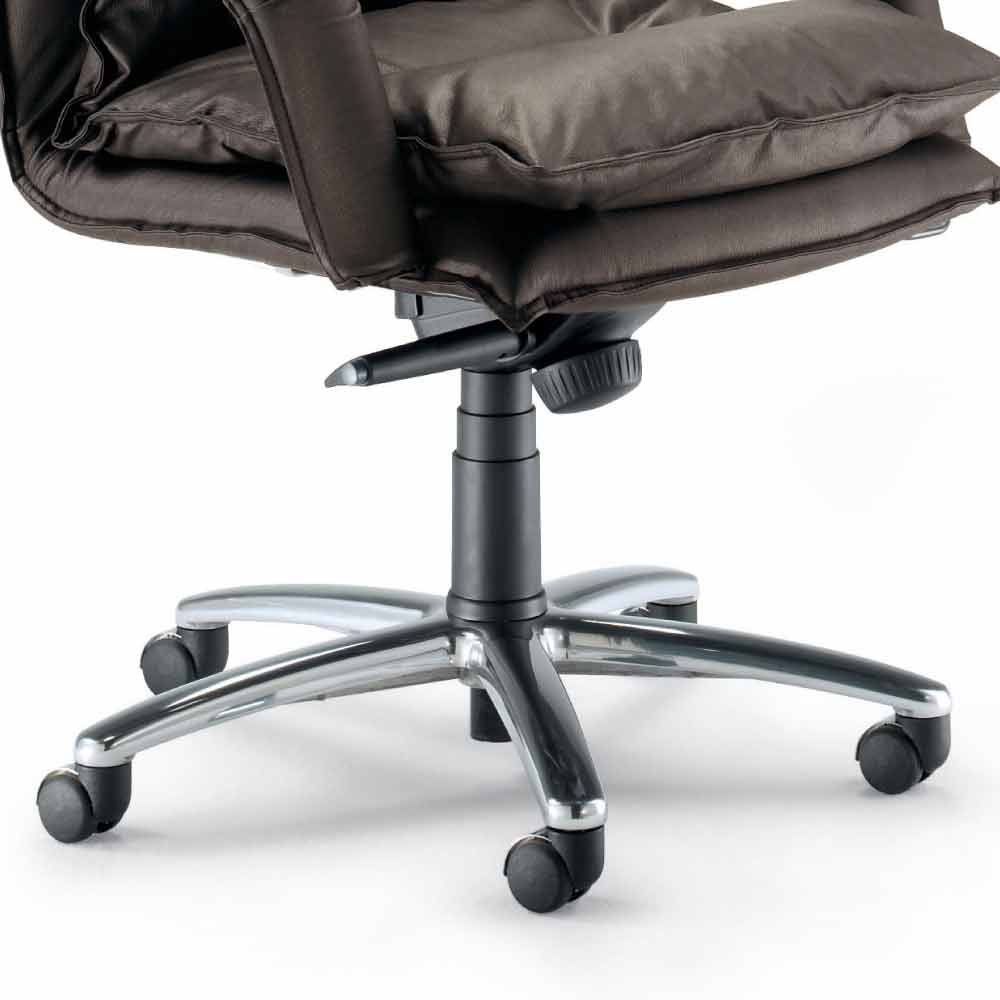 Embellecido con fantásticos reposabrazos con estructura de soporte en acero pintado con polvos epoxi en color negro, acolchado con espuma de poliuretano cortado de un bloque, con una densidad de 50 kg / m3, y cubierto. La base de 5 estrellas está hecha de aluminio fundido a presión pulido, completo con ruedas de nylon de 50 mm con freno. Gemma también es completamente removible.