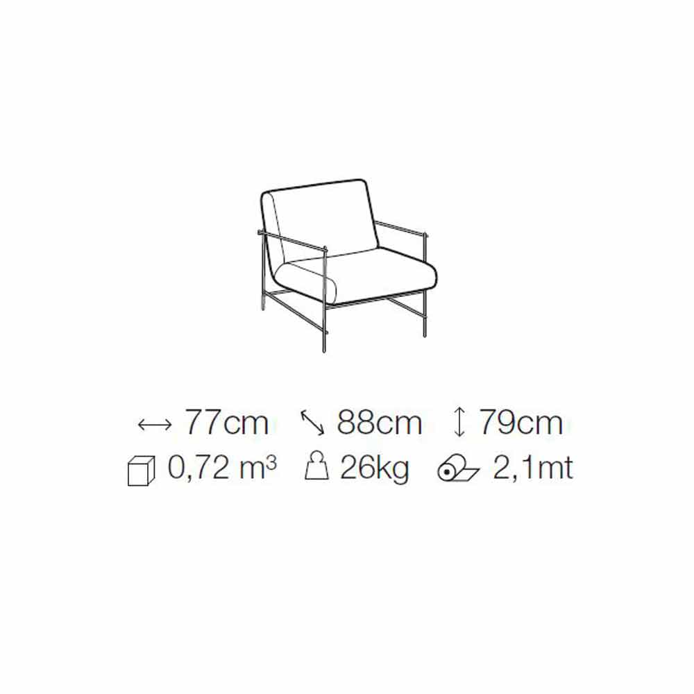 Sillón de salón moderno fabricado en Italia con estructura de metal pintado , carcasa en paneles de madera blockboard y cojines tapizados en espuma de poliuretano indeformable recubierta de Tecnoform. Asiento y respaldo en tejido completamente desenfundable. Este objeto de diseño se caracteriza por un fuerte impacto visual sin dejar de ser particularmente simple y esencial . La fina estructura metálica da la impresión de que la carcasa está suspendida en el aire, creando una sensación de ligereza pero al mismo tiempo asegurando un asiento sólido y robusto. Funcional y con un diseño atractivo, este sillón consigue impresionar la singularidad dentro de cualquier espacio doméstico pero también en los espacios públicos, dando vida a muebles llenos de personalidad.