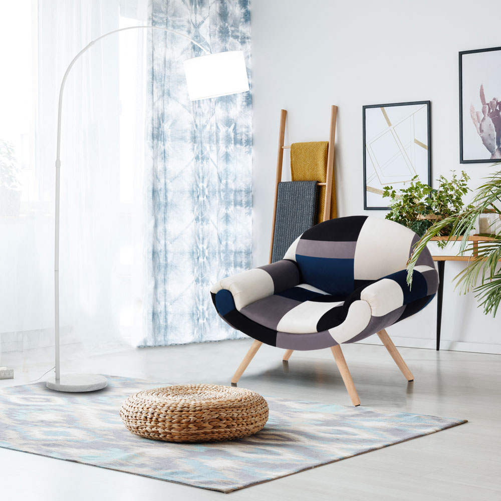 Sillón realizado con asiento tapizado en tela con técnica patchwork no desenfundable y patas en acabado roble macizo, íntegramente . Este mueble es perfecto para dar un ambiente moderno, colorido y original a cualquier ambiente en el que se coloque, tanto diario como contract. Queremos ofrecer al cliente un asiento cómodo y confortable para tener un momento de relax y tranquilidad.