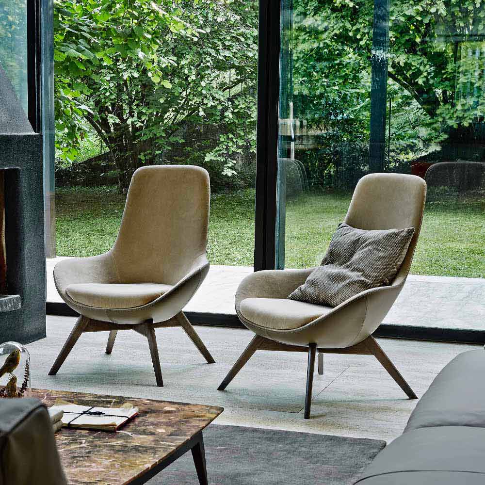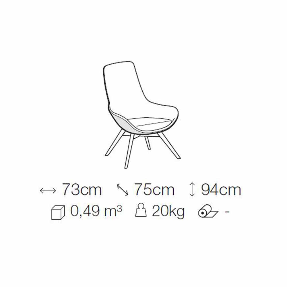 Sillón de diseño fabricado en Italiacon patas de madera en acabado madera gris, estructura interna en acero y espuma extruida y cojín del asiento en espuma de poliuretano indeformable (densidad 30 kg / m³). La carcasa tiene una tapicería de cuero externa mientras que la parte interna está cubierta de tela a juego con el cojín del asiento. Cojín removible, estructura no removible. Su mirada trae a la mente líneas y formas del pasado revisadas en clave contemporánea para dar vida a un asiento vanguardista y particularmente innovador. Su calota tiene un diseño envolvente capaz de ofrecer un asiento extremadamente cómodo y acogedor perfecto para áreas de estar de estilo moderno en el que llenar espacios con un complemento con un alma elegante y refinada que puede caracterizar todo el ambiente con personalidad.