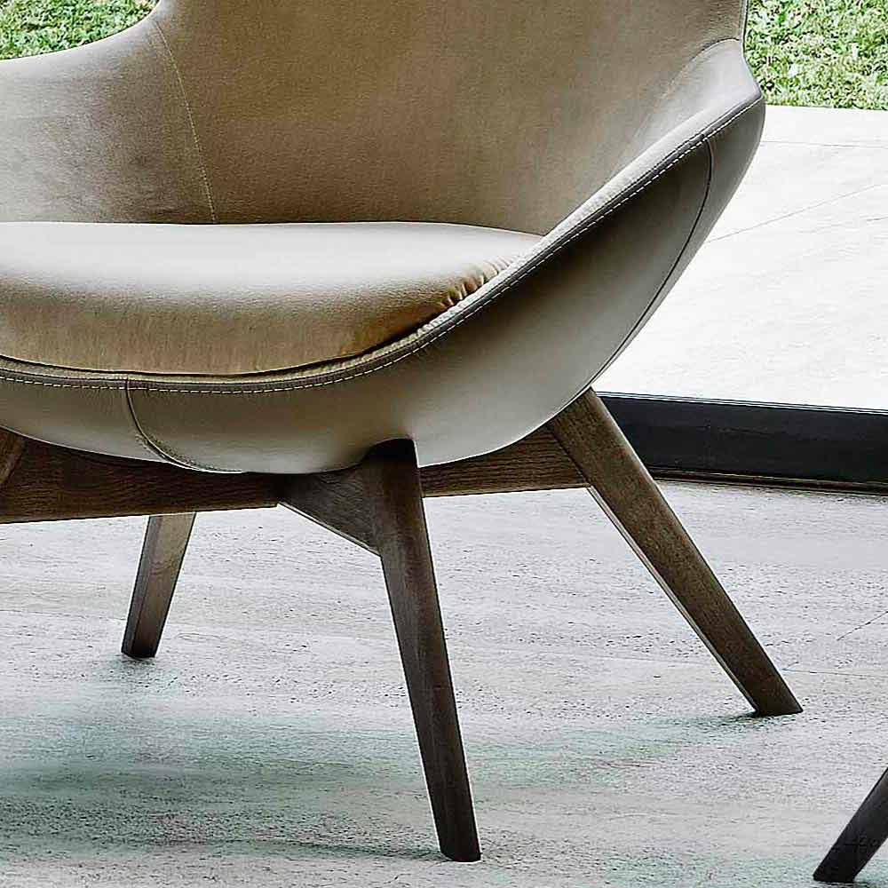 Sillón de salón en piel y tela con base de madera Made in Italy, de alta calidad.