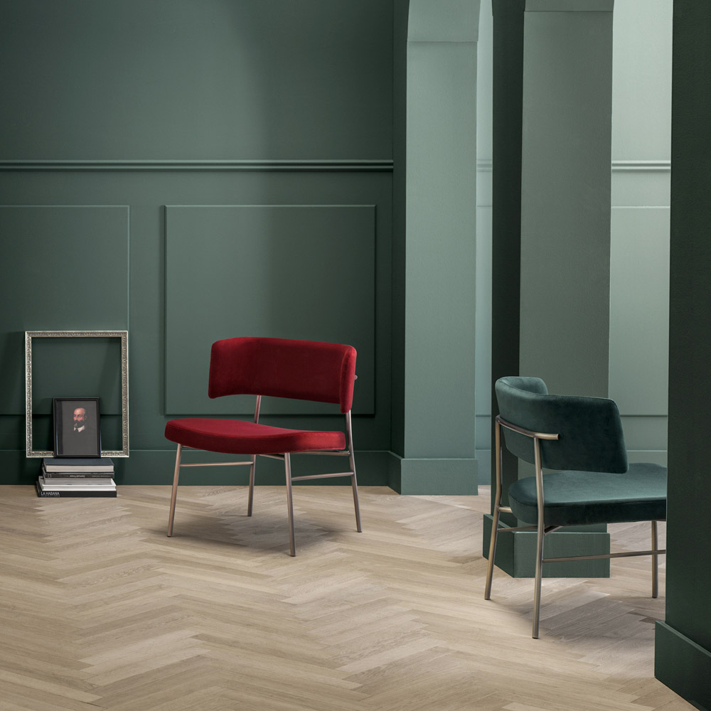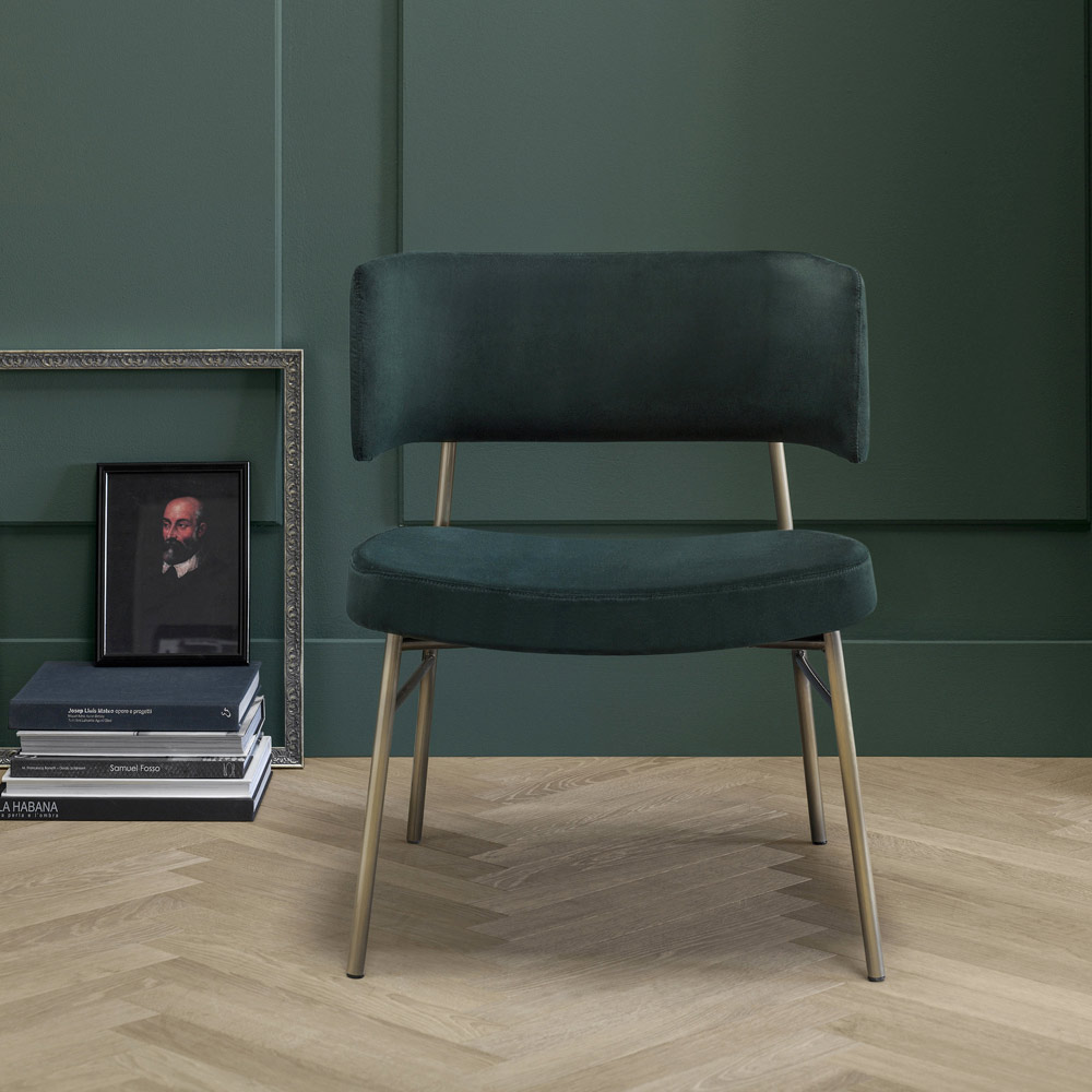 Sillón elegante fabricado en Italia con estructura de metal pintado y asiento tapizado en terciopelo . Confort y solidez son las palabras clave que mejor describen este preciado artículo, ideal para amueblar espacios habitables con un gusto moderno y particularmente refinado. Lo llamativo de su diseño es la perfecta combinación de líneas sencillas que abarcan toda la estructura y el refinamiento atemporal del terciopelo, un material de gran valor y con un aspecto fascinante. Gracias también a su forma, este maravilloso sillón asegura un asiento ergonómico y acogedor, estudiado y diseñado para regalar momentos dedicados al relax en los que dejarse mimar.