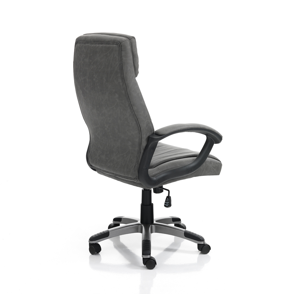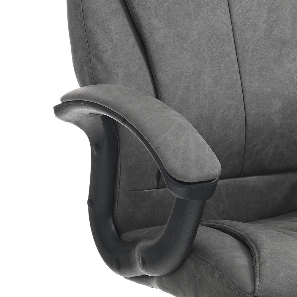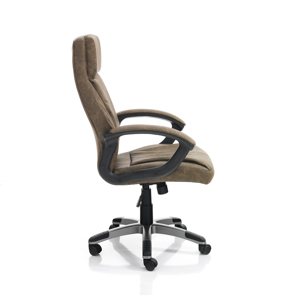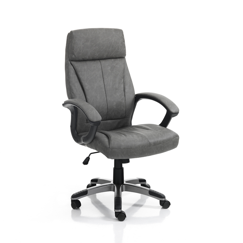 Sillón fabricado con asiento tapizado en polipiel efecto envejecido , base en forma de estrella de plástico , elevación a gas regulable en altura y ruedas giratorias, íntegramente . Este artículo garantiza un asiento suave y envolvente , fácil movimiento gracias a las ruedas y toda la calidad. Es perfecto para usar en oficinas de trabajo pero también en escritorios domésticos, aportando a la estancia un ambiente profesional y moderno.