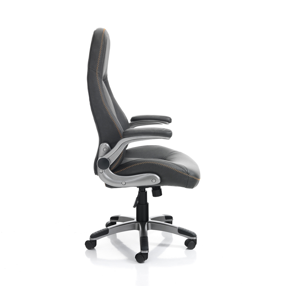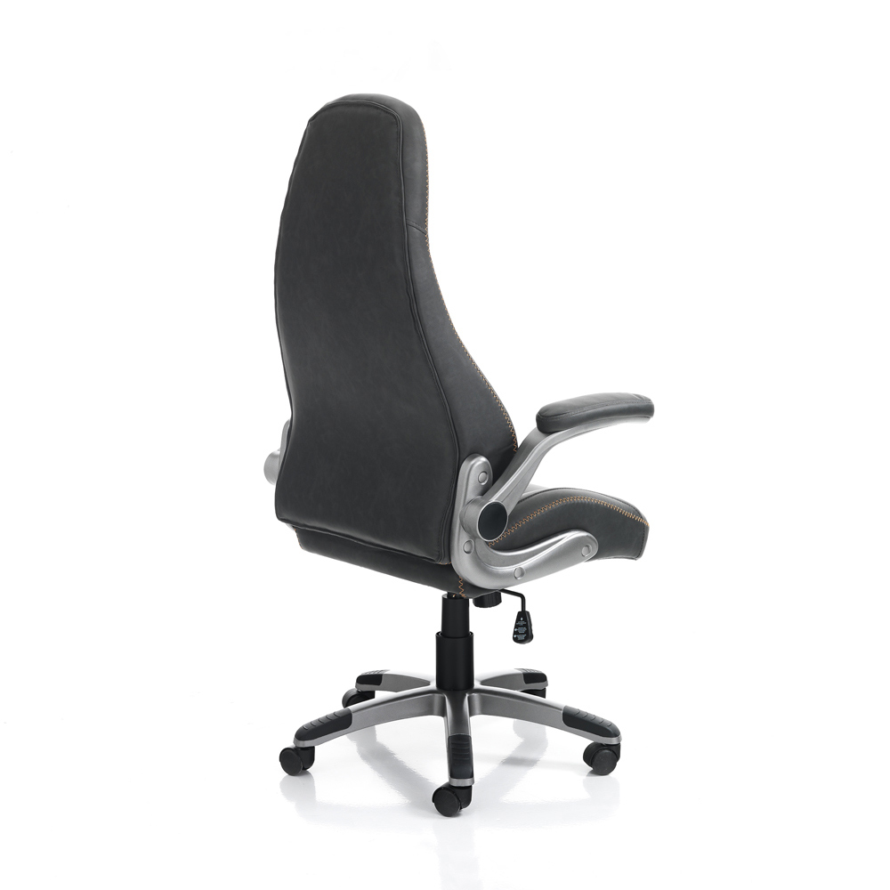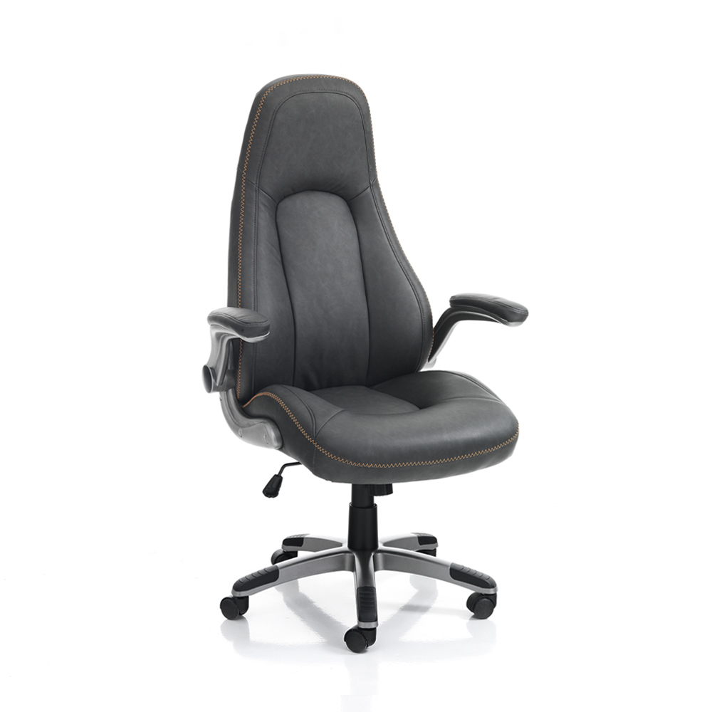 Sillón fabricado con asiento tapizado en polipiel efecto envejecido color gris oscuro , base en forma de estrella de plástico , elevador de gas regulable en altura y ruedas giratorias, íntegramente . Este artículo garantiza un asiento suave y envolvente , fácil movimiento gracias a las ruedas y toda la calidad. Es perfecto para usar en oficinas de trabajo pero también en escritorios domésticos, aportando a la estancia un ambiente profesional y moderno.