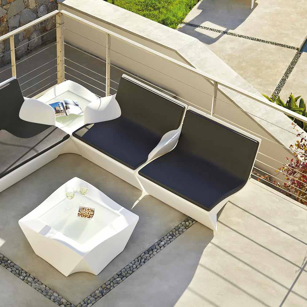 Fabricada en polietileno Kami Ichi está disponible en la versión estándar en trece colores diferentes. Se adapta tanto a mobiliario de interior como de exterior y ofrece la posibilidad de adquirir también cojines fabricados en poliuretano disponible en tres colores diferentes: - Antracita; - Gris claro; - Blanco. Kami Ichi se puede combinar con el sillón con reposabrazos Kami San y el sofá con reposabrazos Kami Yon. Bajo pedido, también está disponible la versión lacada o luminosa.