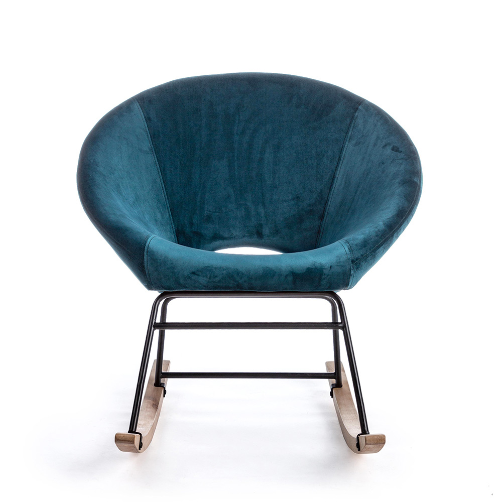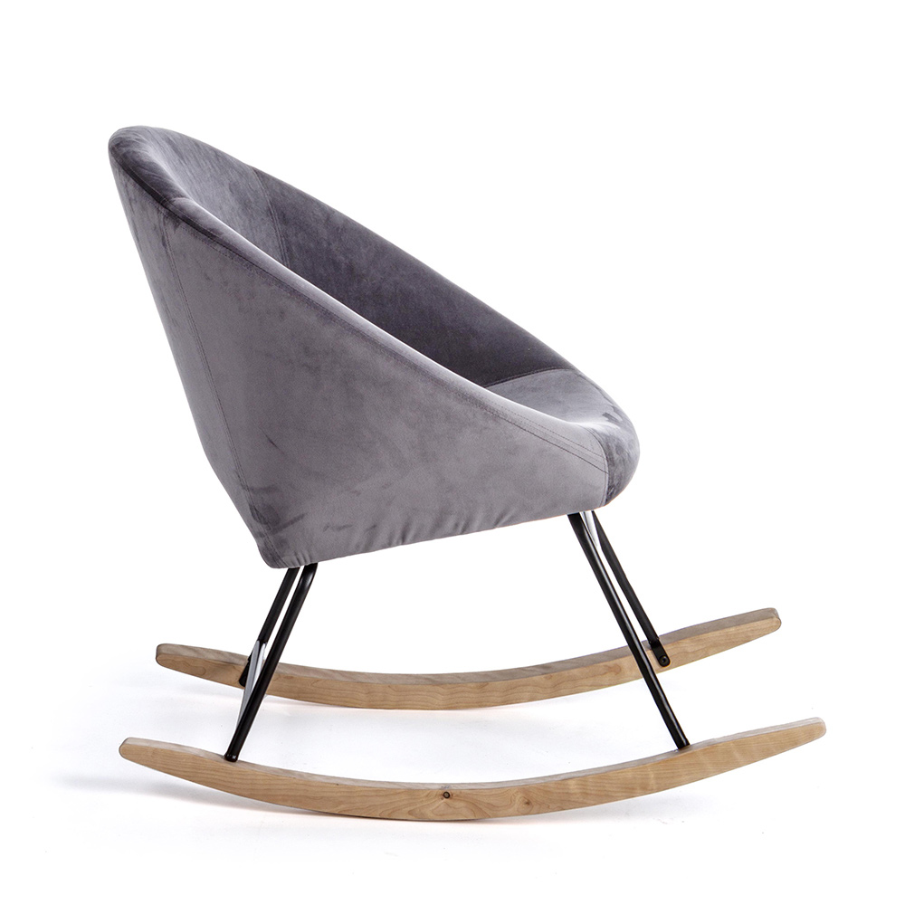 Sillón mecedora con estructura en acero y madera de abedul, asiento tapizado con efecto terciopelo 3 acabados.