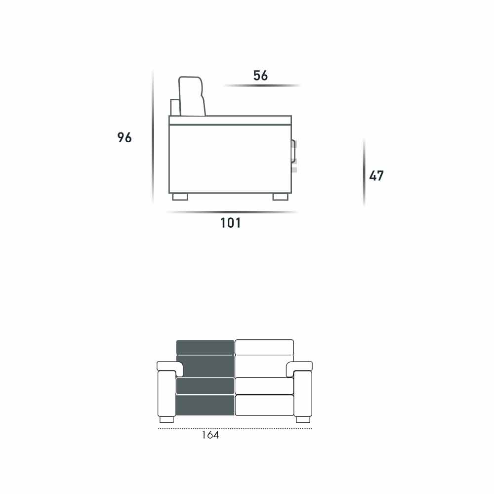 Sofá motorizado de 2 plazas con 1 asiento eléctrico Lilia, made in Italy