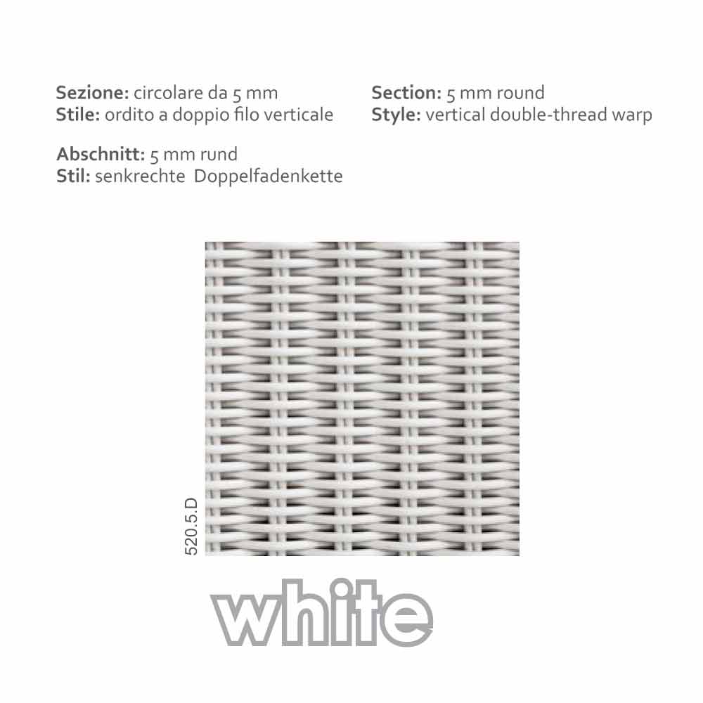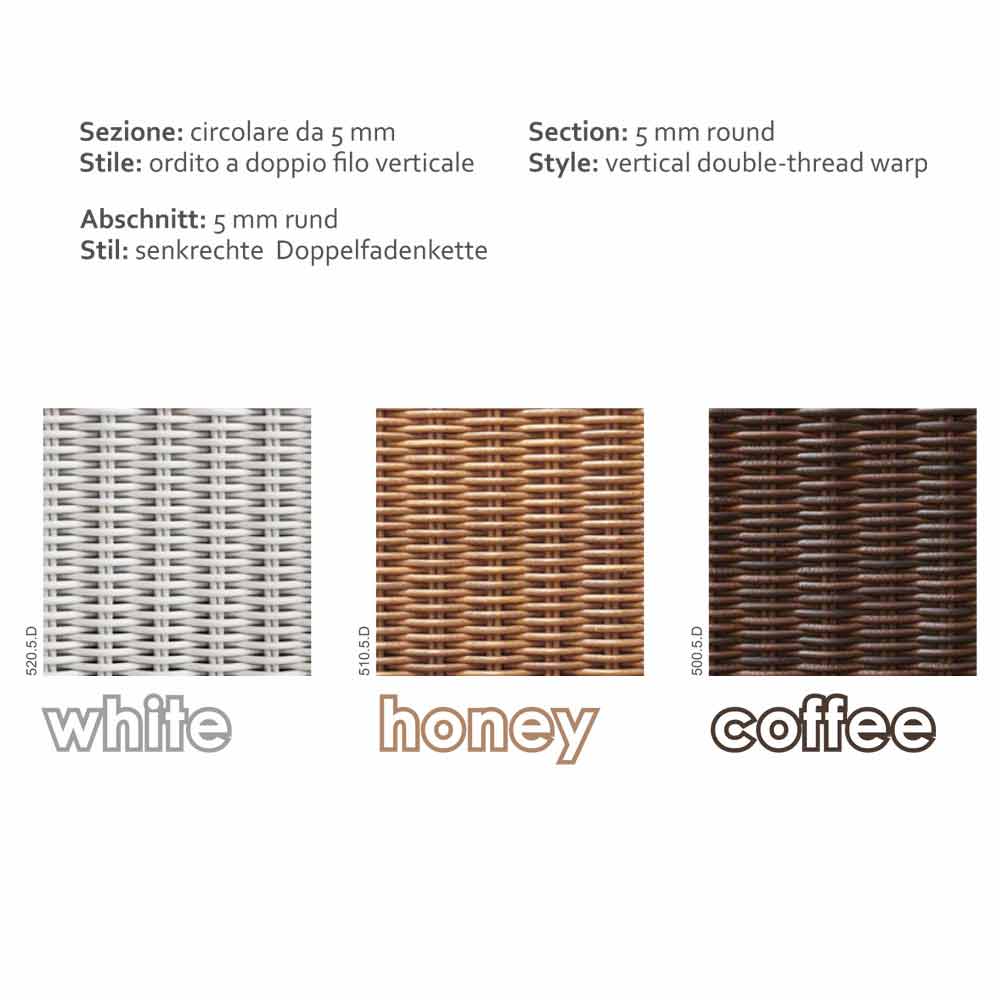 - Fibra de Polietileno HDPE (fibra sintética correspondiente a la fibra natural rattan, dotada de un tacto similar al de la fibra natural).