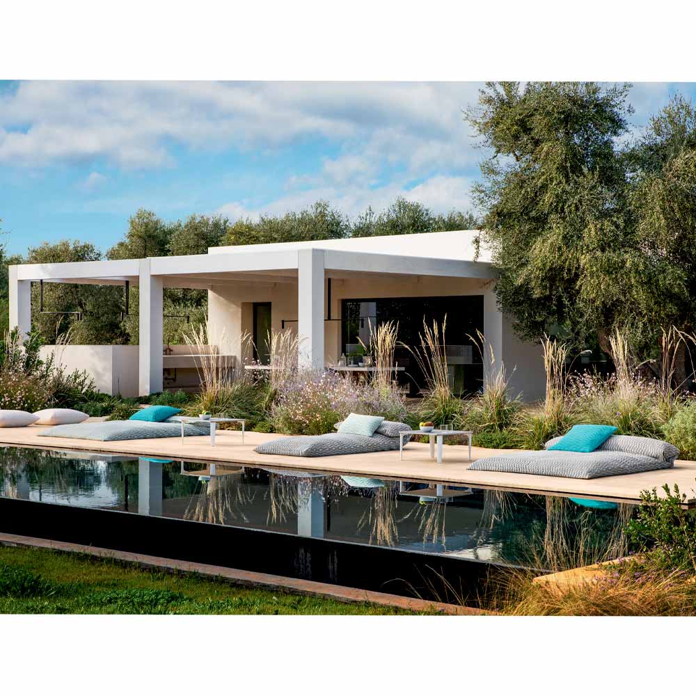 El diseño de este puf cama de exterior confiere un confort extremo gracias a la línea de plegado presente en las tres cuartas partes de la superficie, de forma que la zona dedicada al resto de hombros y cabeza queda bien definida y aún más confortable.