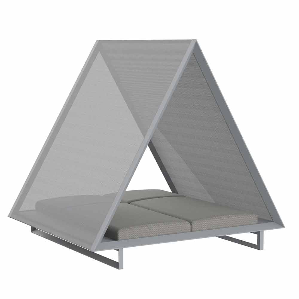 Diván doble para exterior con diseño de lujo, estructura de aluminio y tela.