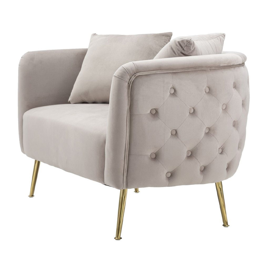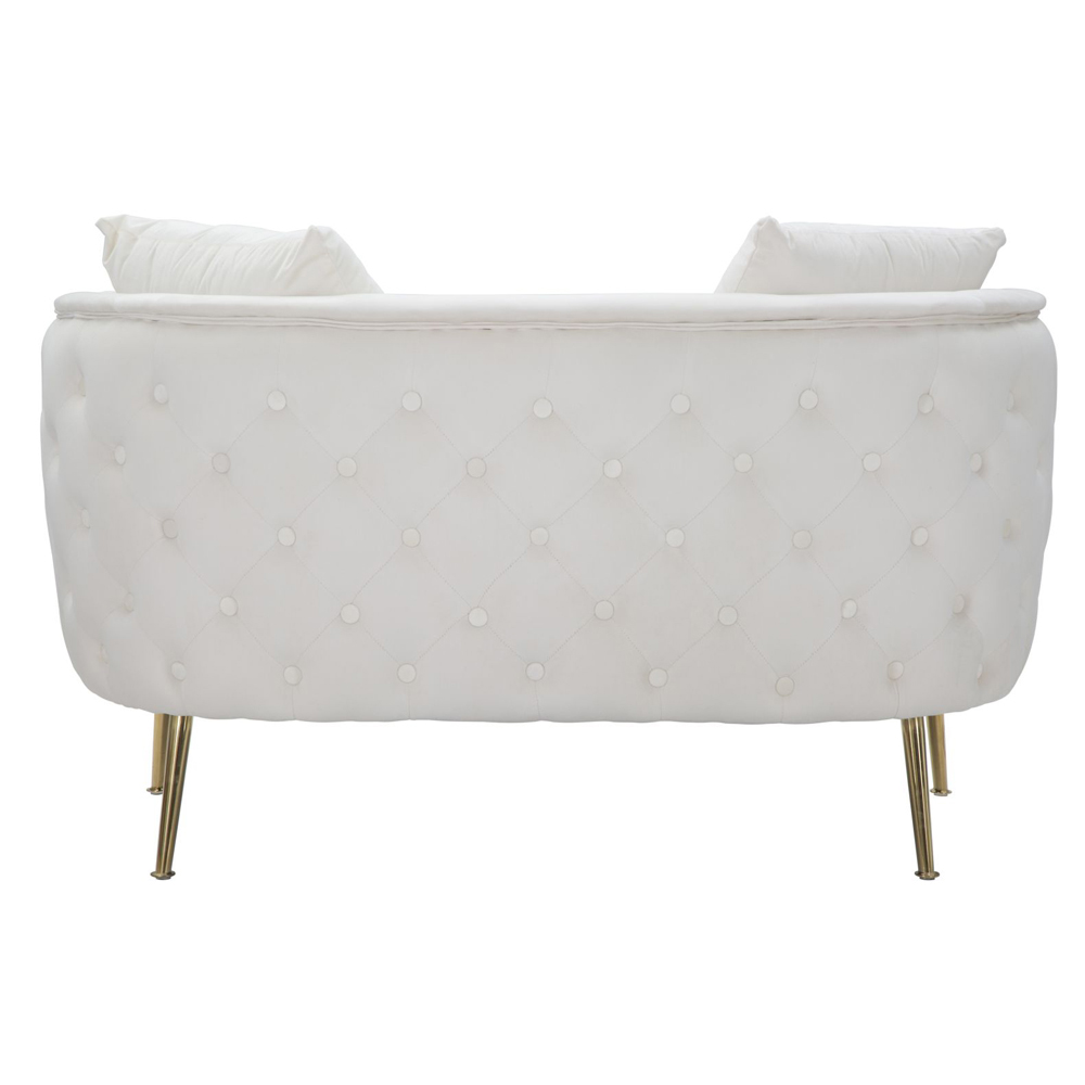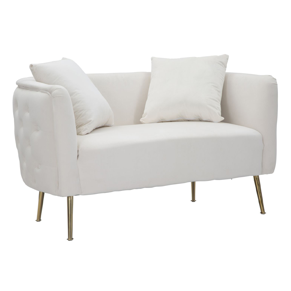 Sofá de 2 plazas con estructura interna fabricado en madera y acolchado en esponja con revestimiento externo de terciopelo y pies de hierro con acabado dorado. Un mueble ideal para dar carácter a las áreas de estar con un estilo moderno y elegante en el que asegura un toque exclusivo y al mismo tiempo un asiento cómodo y acogedor y para un resultado óptimo. El maravilloso contraste entre el terciopelo y el hierro dorado enriquece aún más el diseño final del producto, haciéndolo único y fascinante .