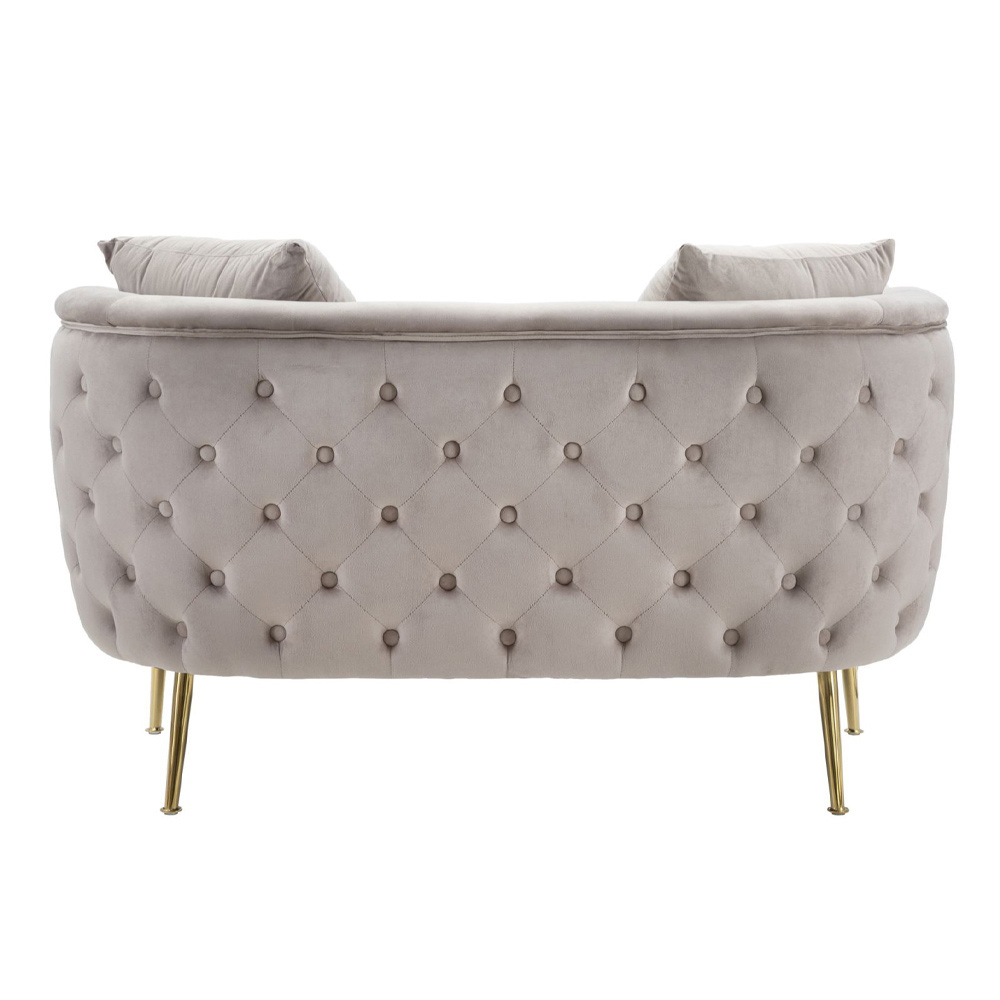 Sofá de 2 plazas tapizado y tapizado en terciopelo con pies de hierro dorado.