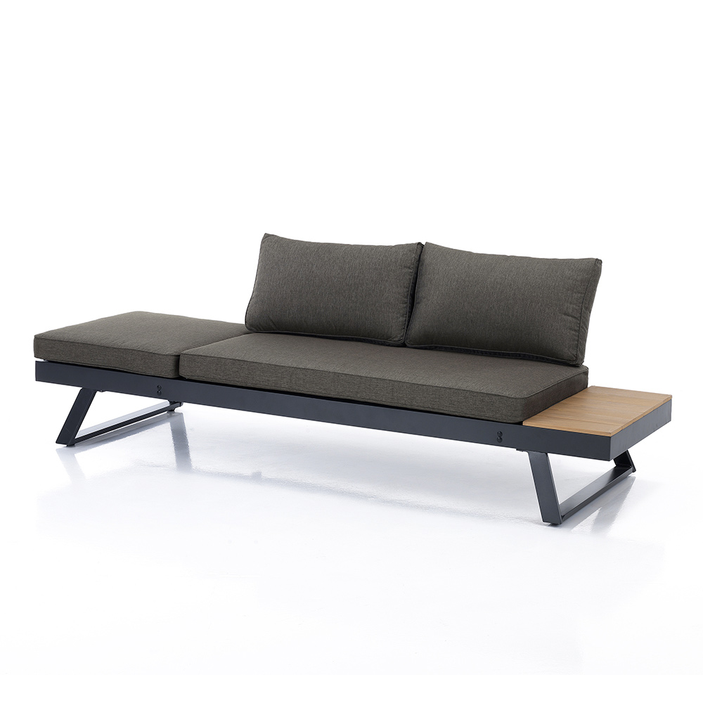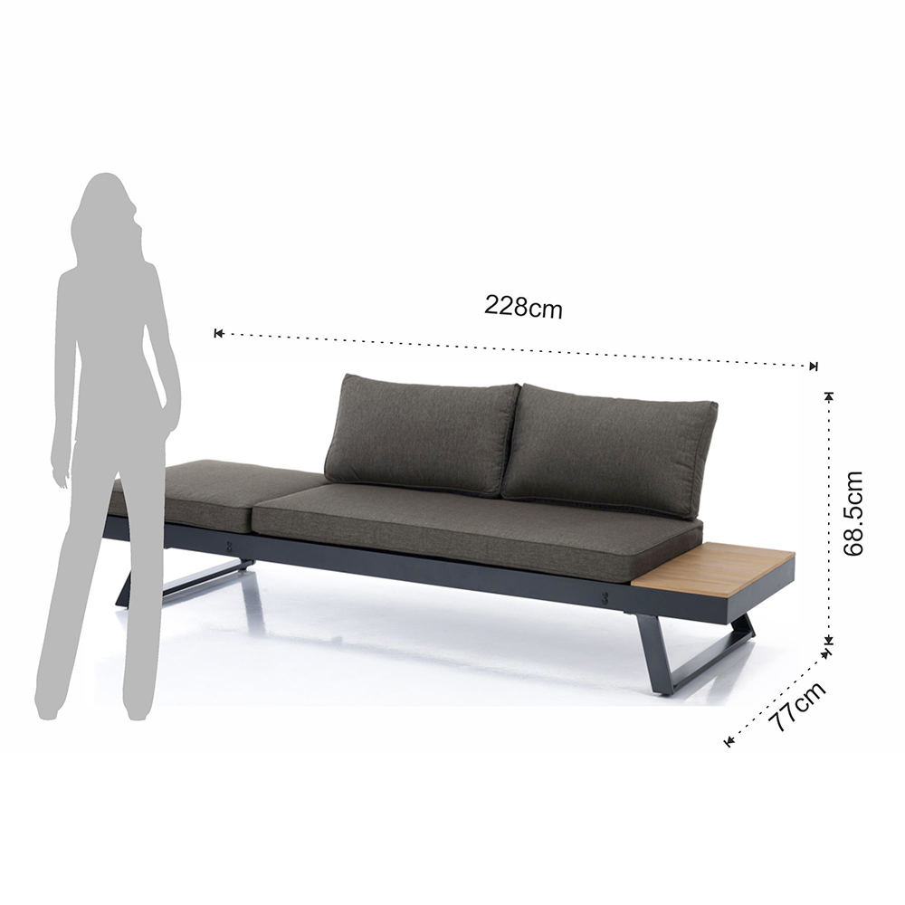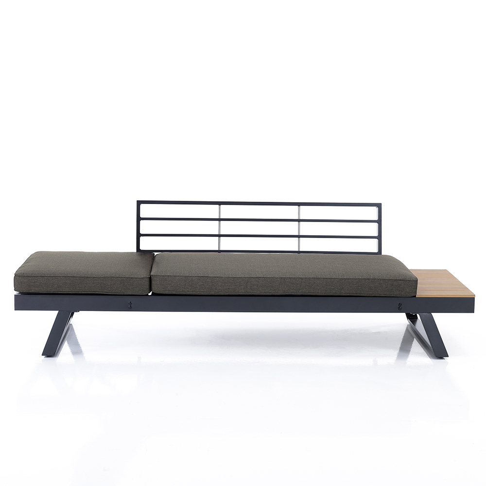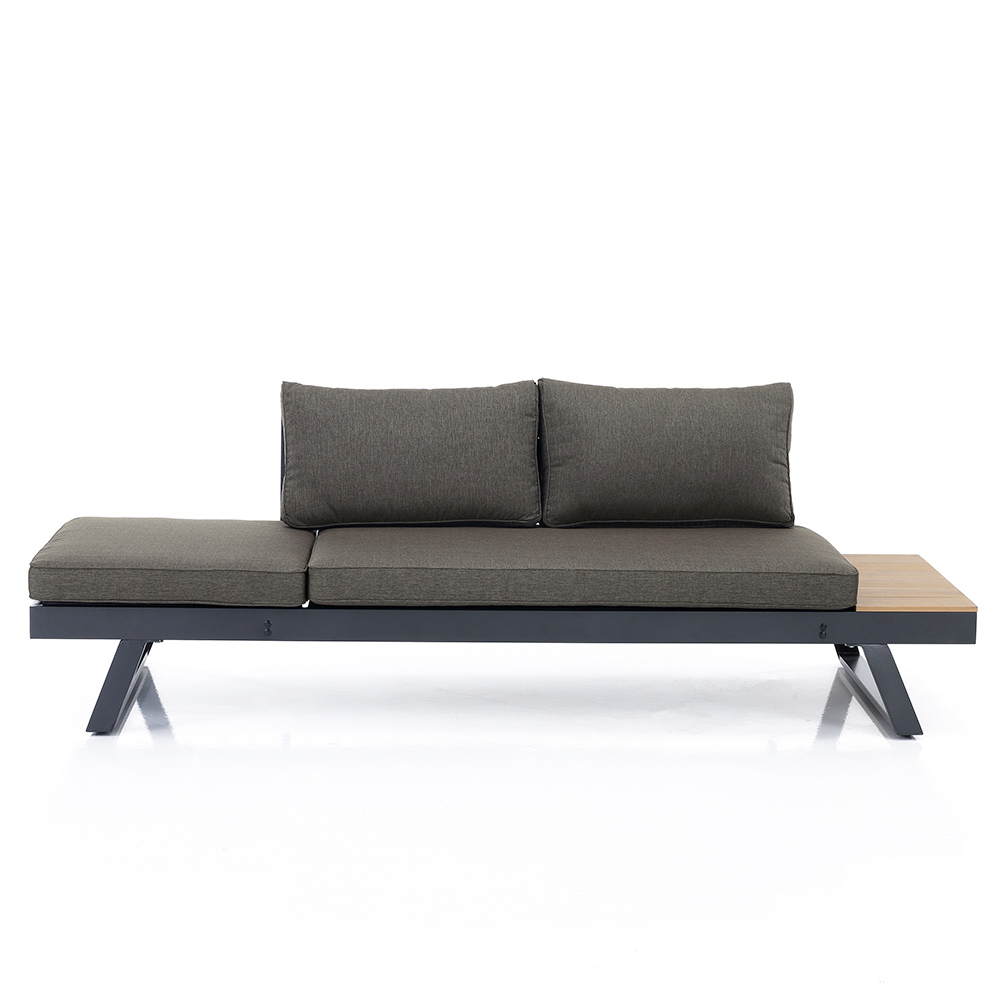 Este sofá es un ejemplo de puro diseño innovador y confort para tu jardín. La fusión de materiales de alta calidad, como el resistente aluminio para la estructura y el polywood para el detalle de soporte, crea una combinación de elegancia funcional . El cojín de poliéster no sólo proporciona una comodidad óptima sino que también añade un elemento de estilo urbano a su espacio exterior.