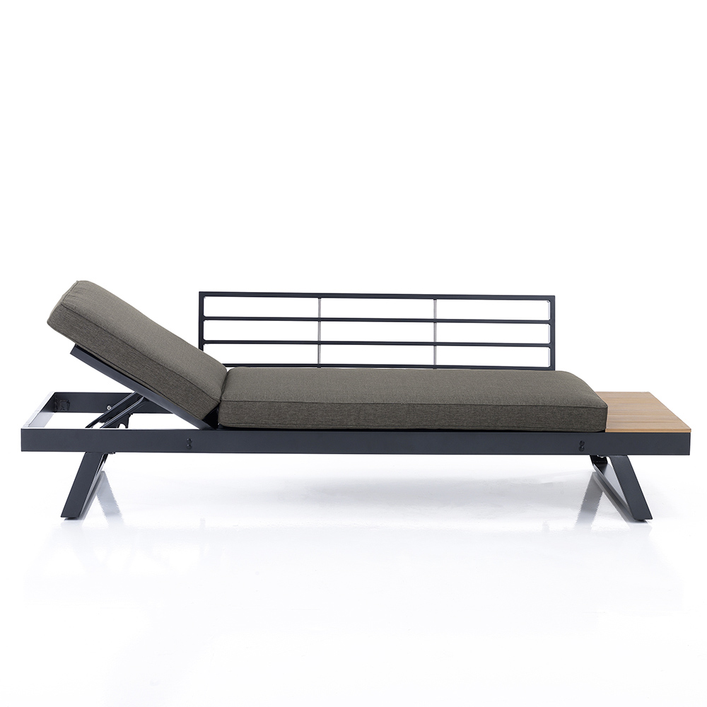 La chaise longue es regulable, permitiéndote encontrar la inclinación perfecta para cada momento de relax, ya sea tomando el sol, leyendo un libro o simplemente disfrutando de la tranquilidad de tu jardín. El diseño limpio y las líneas geométricas enfatizan una silueta moderna y minimalista , haciendo de esta pieza un punto focal de estilo y comodidad.