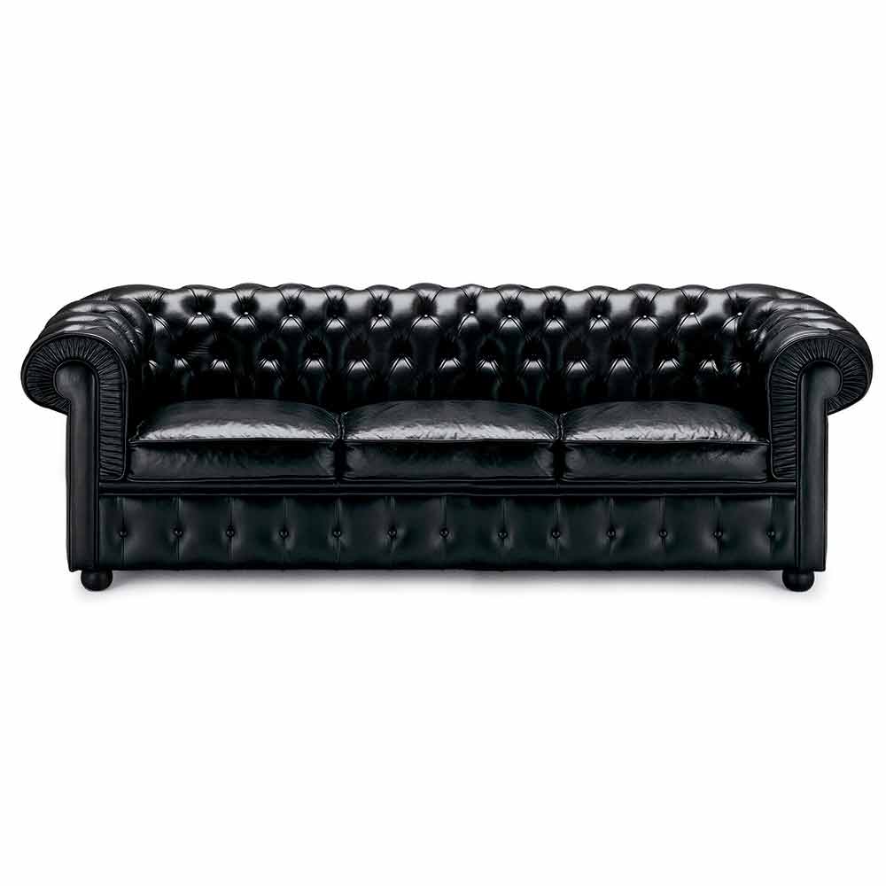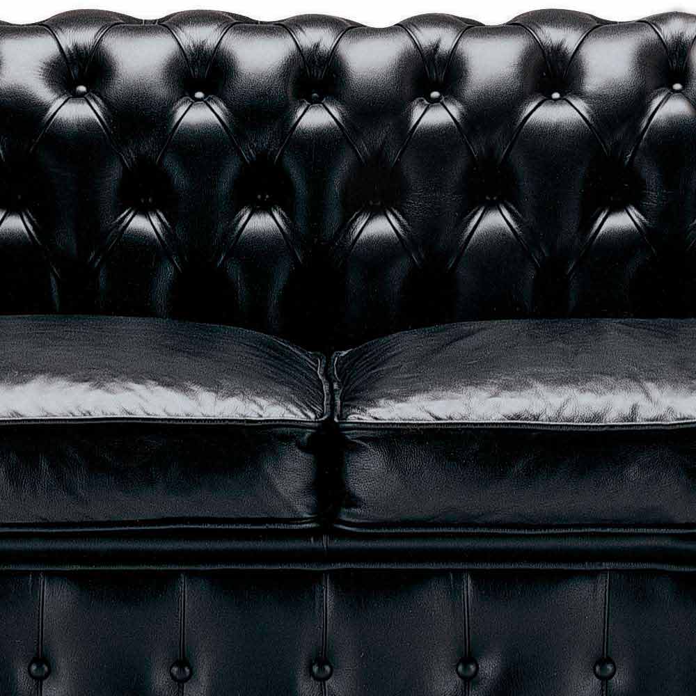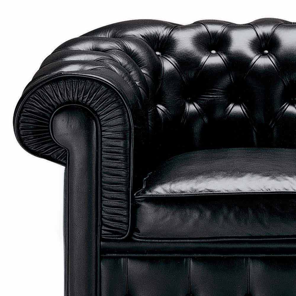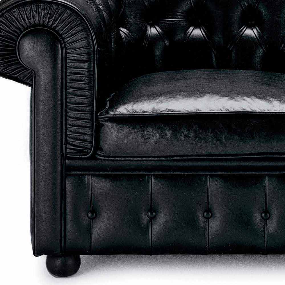 Sofá de 3 plazas de estilo clásico tapizado en piel con pies de madera Made in Italy.
