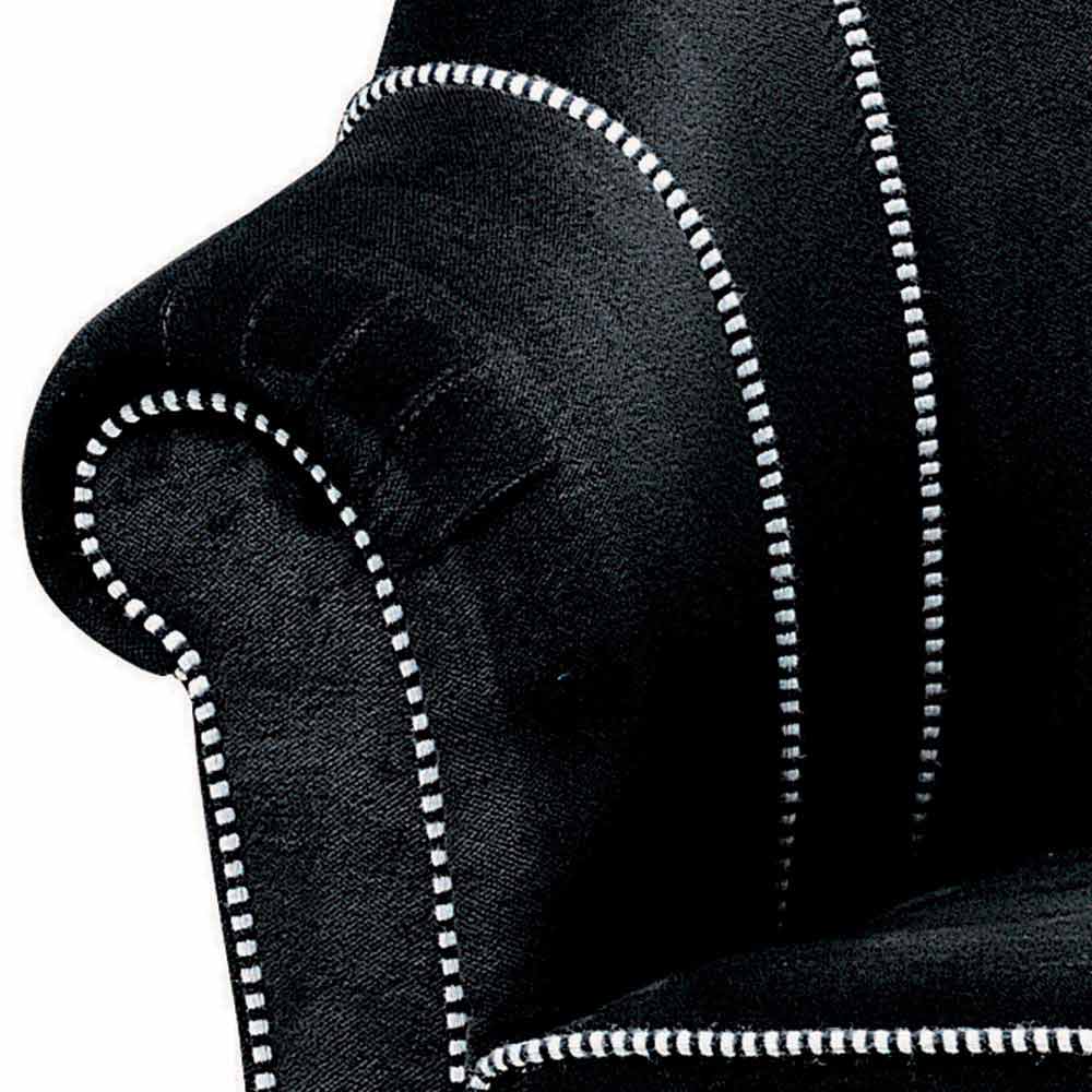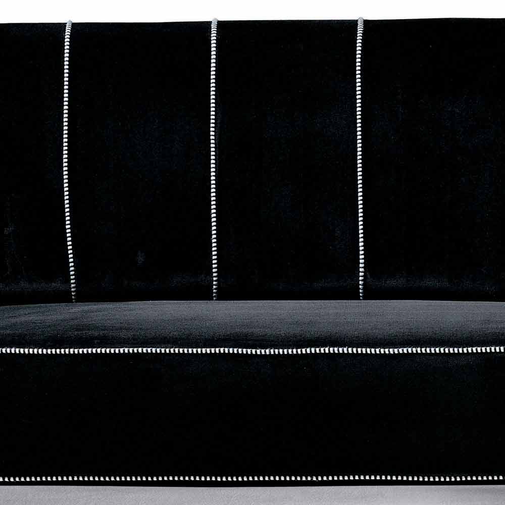 Sofá de 3 plazas fabricado en Italia con estructura interior de madera revestida de espuma de poliuretano y forro de fibra de poliéster, revestimiento exterior de terciopelo negro con adornos en blanco y negro ( no desenfundable ). Este sofá tiene una forma particularmente simple y versátil que se adapta fácilmente a cualquier salón moderno gracias a un diseño sobrio y formas esenciales . Para enriquecer la estética son las costuras contrastantes que subrayan las características básicas del sofá, dando una sensación de refinamiento e innovación para un resultado de vanguardia. Ideal para quienes aman un estilo de decoración elegante, esta solución de decoración también cuenta con un revestimiento de terciopelo, un material que maximiza su comodidad incluso al tacto. Los materiales elegidos y utilizados para la realización de este complemento también permiten obtener un asiento particularmente acogedor , por tanto ideal para pasar maravillosos momentos dedicados al relax en su salón.