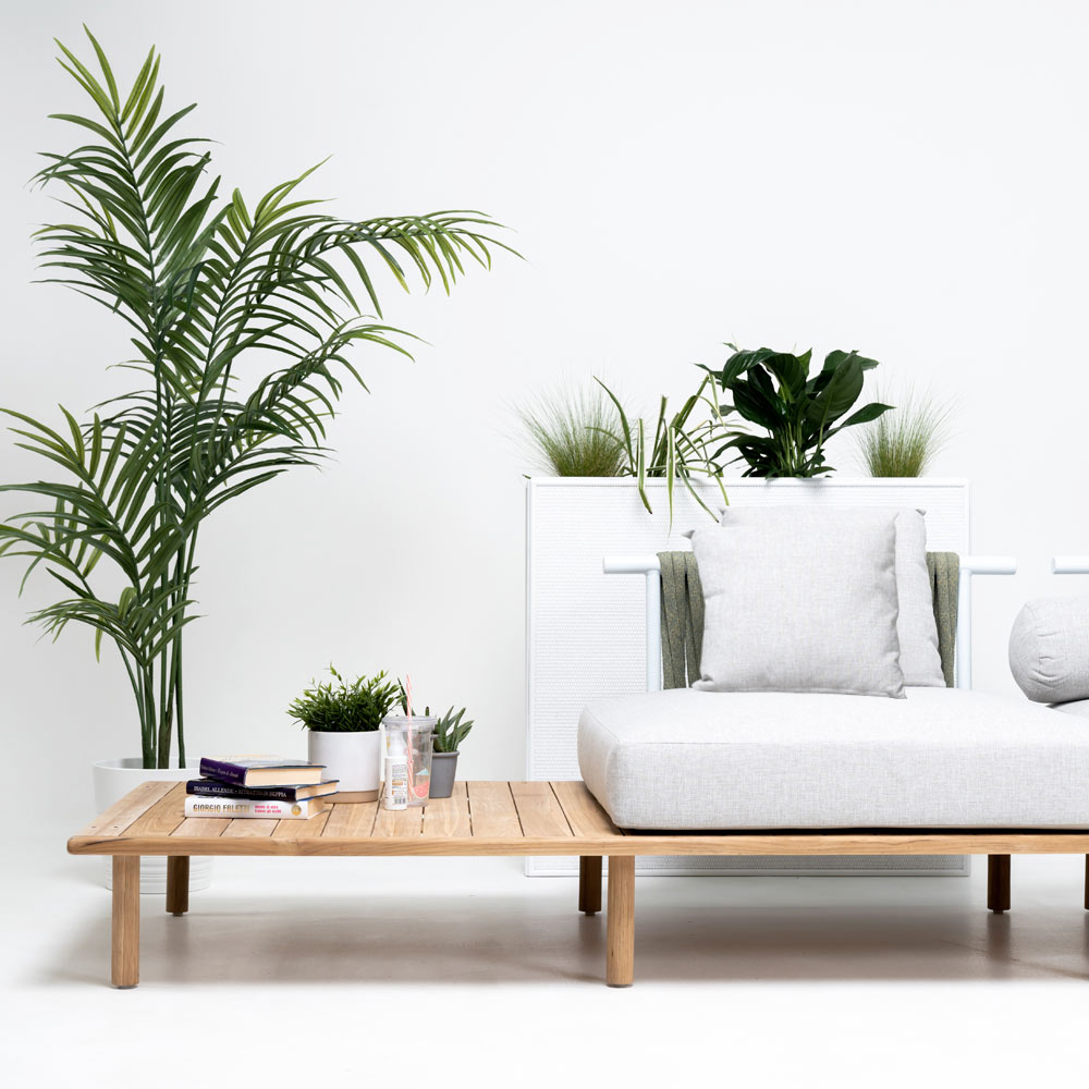 Madera de teca indonesia seleccionada procedente de bosques controlados y sostenibles (INDONESIANLEGALWOOD). La teca está clasificada como la madera más valiosa disponible para muebles de exterior. Es extremadamente duradera, estable, resistente a los agentes atmosféricos, hongos, parásitos e insectos. Contiene altos niveles de aceites naturales que la hacen resistente y limitan la absorción de humedad. Con el tiempo, los muebles de teca expuestos al sol, la lluvia, la humedad, etc. tienden generalmente a adquirir un color gris plateado: esto se debe a un proceso de oxidación de la superficie que protege naturalmente la madera. Este proceso es puramente estético y no daña la estructura ni la calidad de la madera. La aparición de aceite en la superficie de los muebles de teca es un proceso natural: el aceite puede salir durante los primeros meses, de forma más o menos constante dependiendo del entorno en el que se coloquen los muebles. Los aceites naturales presentes en la teca son los que la convierten en la mejor madera para muebles de exterior.