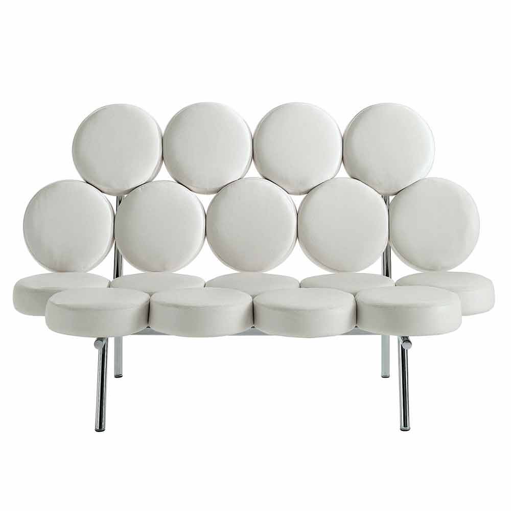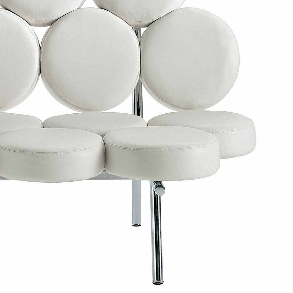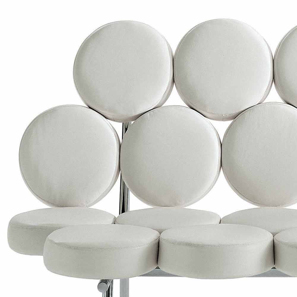 Sofá de salón moderno fabricado en Italia con estructura de acero cromado , asiento y respaldo en caucho de poliuretano y dacrón con revestimiento exterior de piel. Una idea de mobiliarioque fusiona en sí misma la elegancia del cuero y la funcionalidad de su conformación, ofreciendo un asiento cómodo y al mismo tiempo original y un estilo original, ideal para quienes buscan elementos únicos que puedan enriquecer su espacio vital con un toque creativo . Su excéntrico diseño enfatiza su personalidad, convirtiéndolo además en un original elemento decorativo capaz de caracterizar y hacer único cada espacio, del que se convierte en protagonista indiscutible.