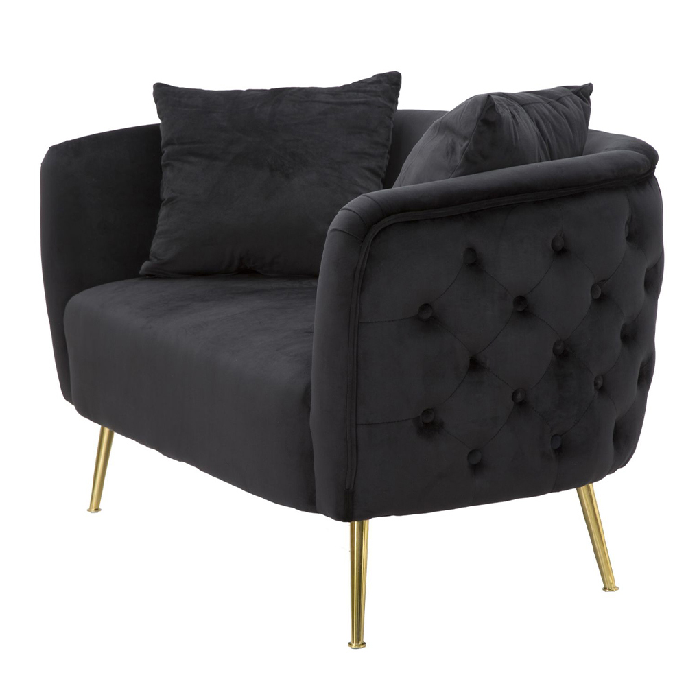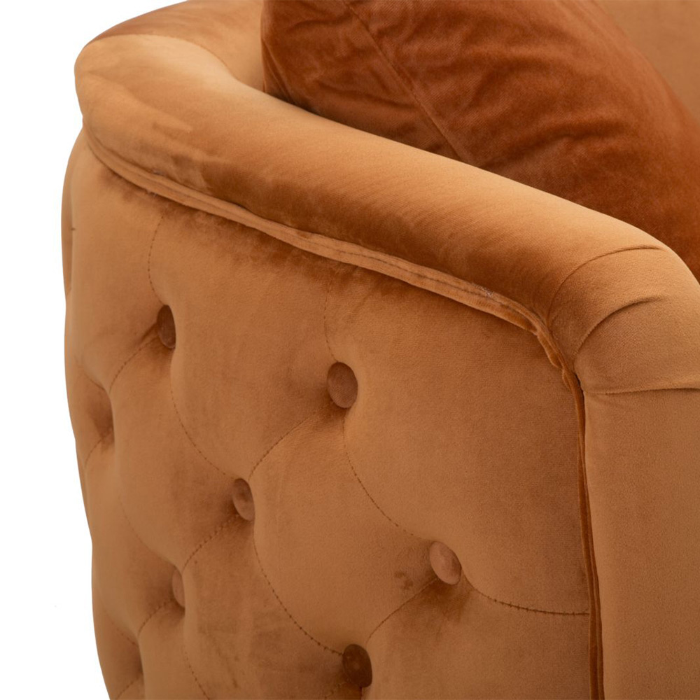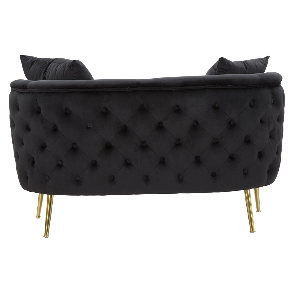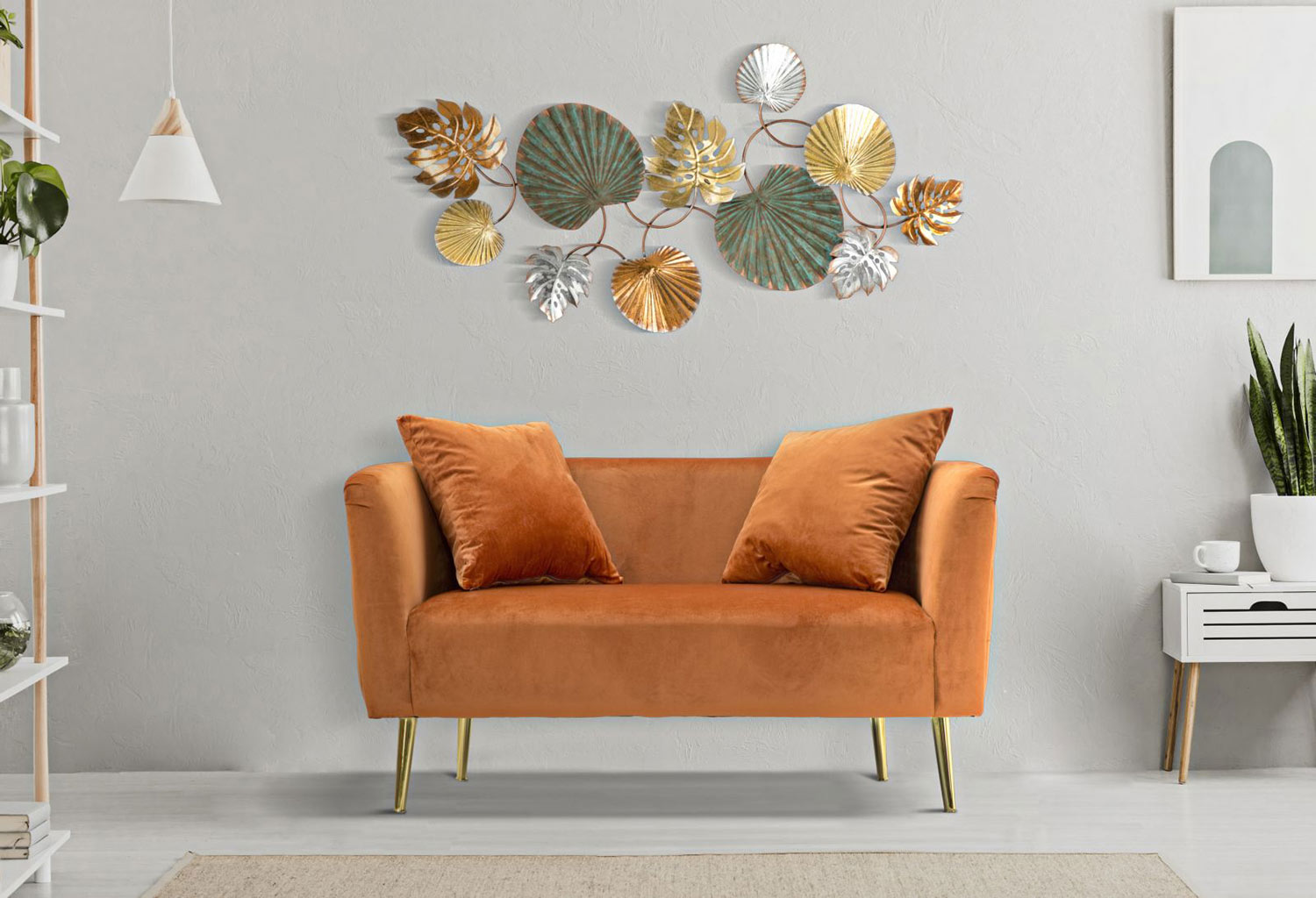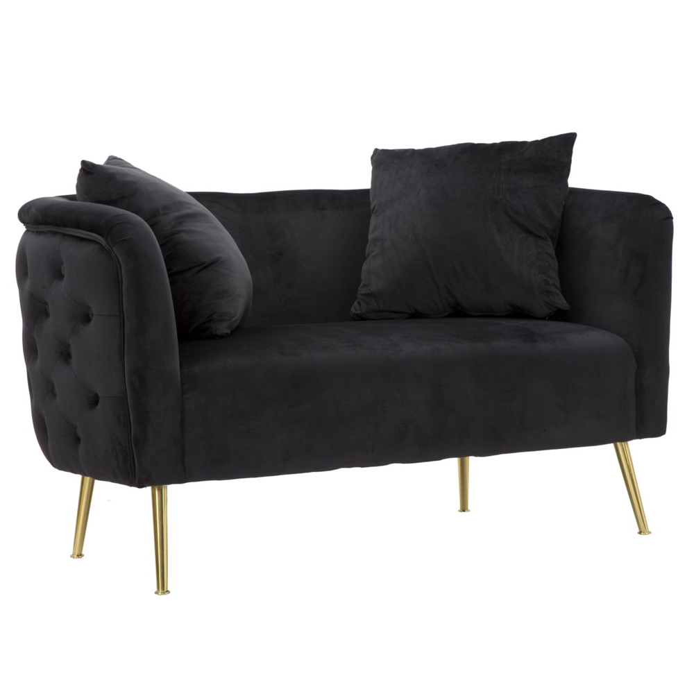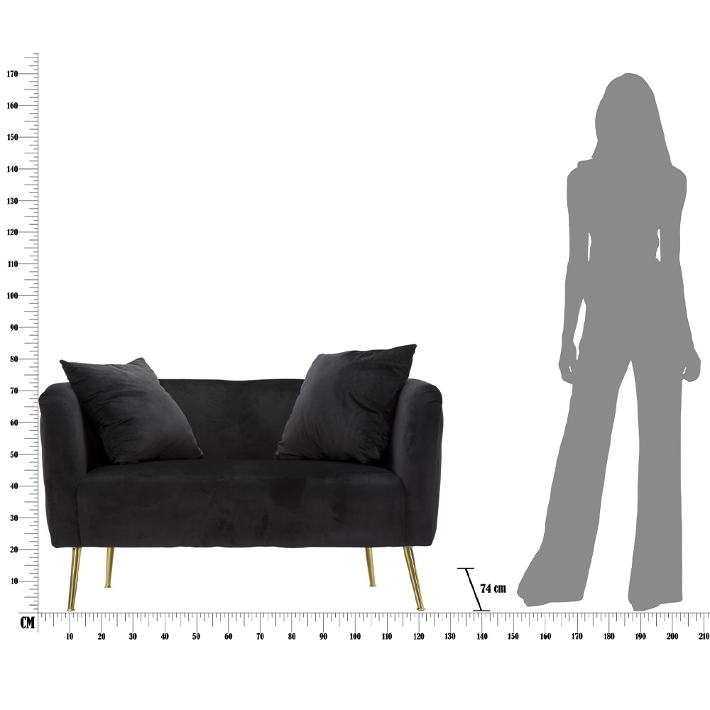 Sofá moderno de dos plazas en madera, hierro y terciopelo.