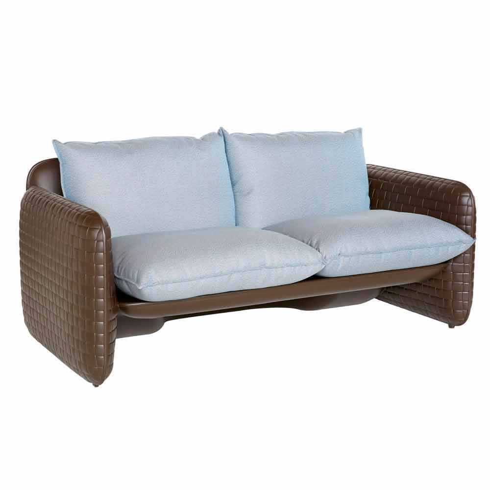 El sofá de dos plazas MARA , diseño de Lorenza Bozzoli, es un producto made in Italy . Su textura única cubre toda la estructura, inspirada en el tejido artesanal del cuero. Los cojines dan un confort absoluto al asiento: impermeables e intercambiables , además, los hace perfectos para el exterior. Mara es una colección que se completa con la butaca y el puf.