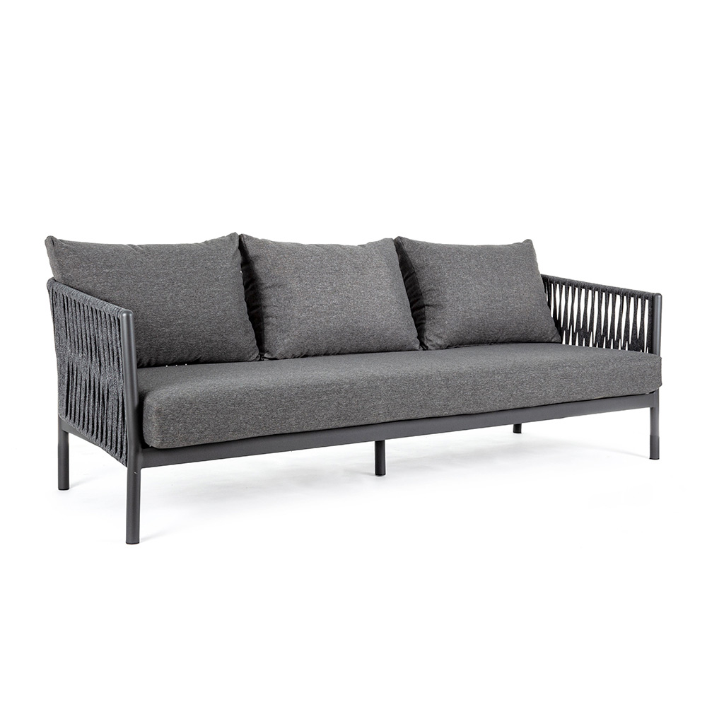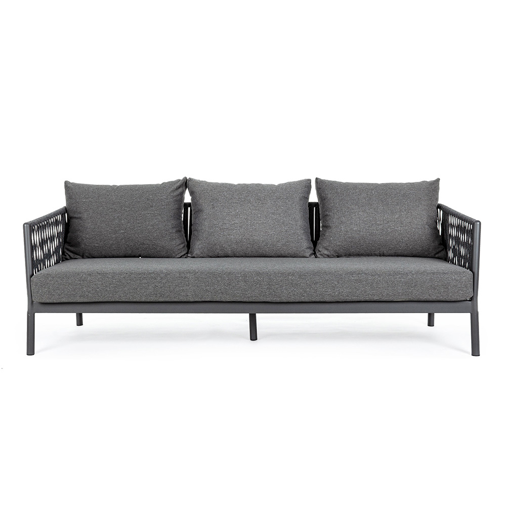 Sofá de exterior de aluminio y cuerda con cojines de tela, Homemotion - Shama