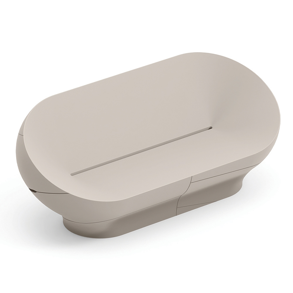 Este sofá destaca por sus líneas suaves y envolventes , inspiradas en formas naturales que crean un efecto visual armonioso y contemporáneo. Su estructura monobloque, compacta y fluida, aporta carácter a los espacios, manteniendo una estética sencilla y elegante.