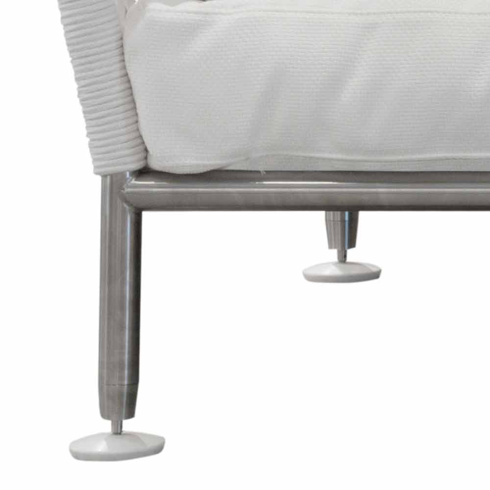 cojines con acolchado dryfeel y tapizado desenfundable en tela para exteriores. Los pies inastillables están hechos de teflón blanco.