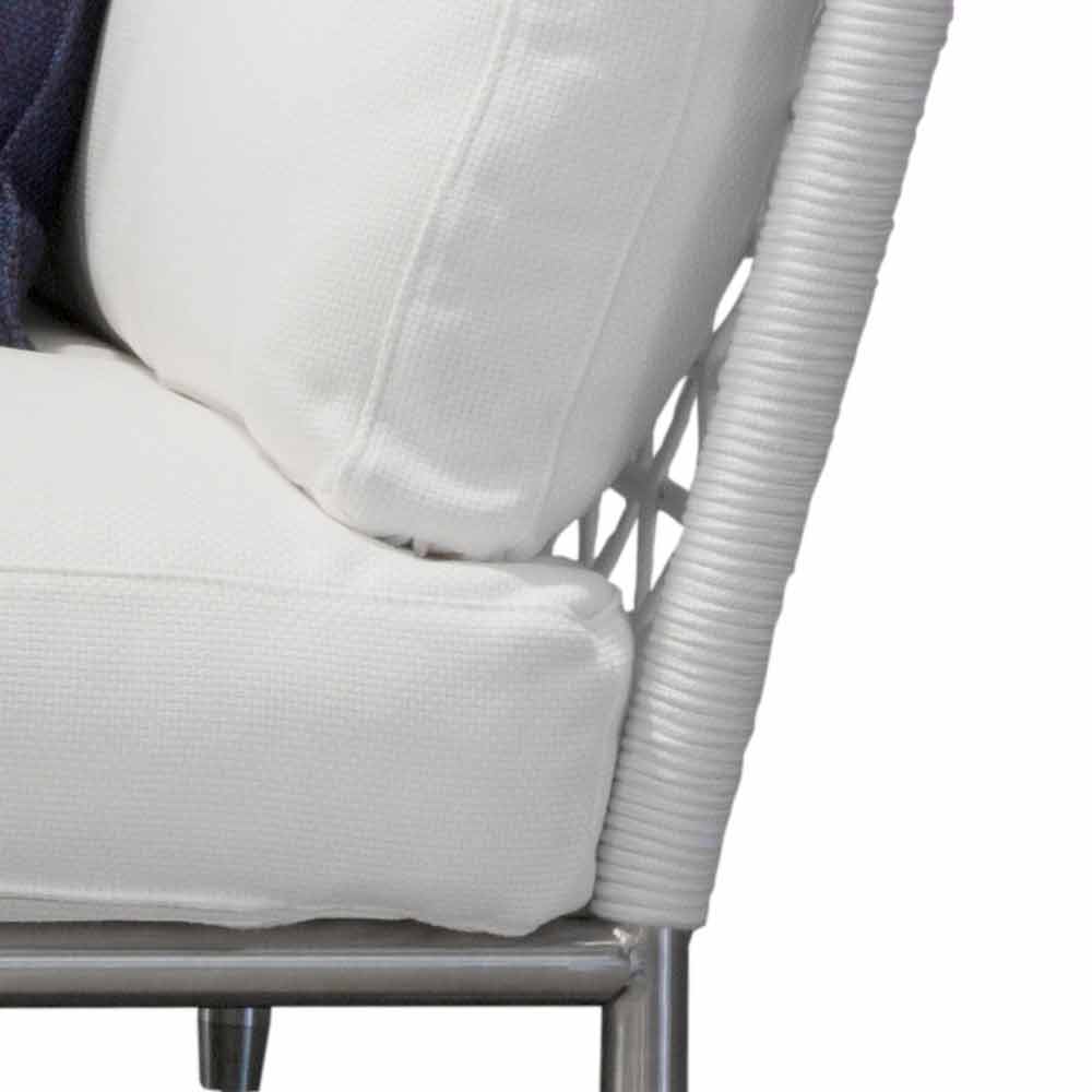 Sofá de exterior tapizado, en acero y pvc tejido con cojines, diseño moderno made in Italy.