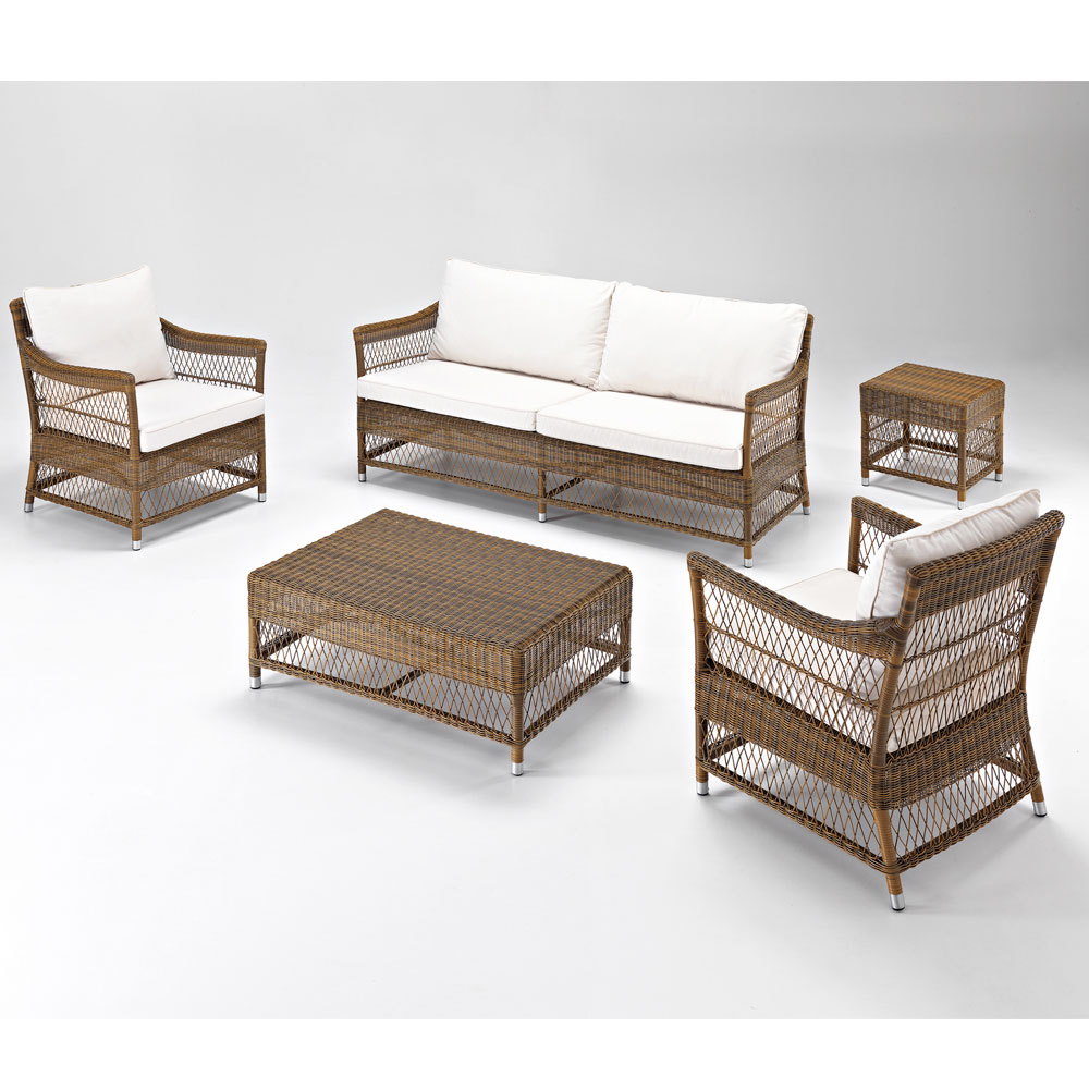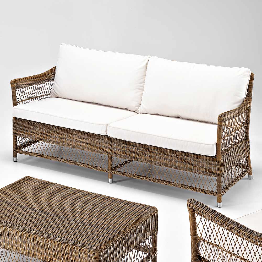 El estilo de tejido es refinado y delicado y junto con la altísima calidad de los materiales y sus formas decididas hacen que este sofá sea perfecto para amueblar interiores y exteriores, tanto ambientes privados como contract como terrazas, porches, jardines pero también encuentran una ubicación perfecta junto a la piscina.