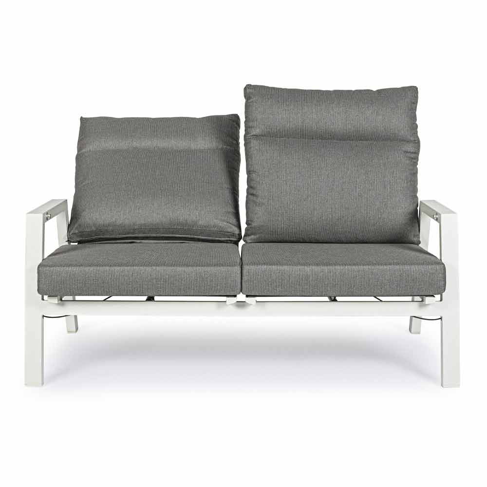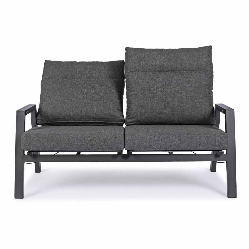 Sofá de exterior de 2 plazas en aluminio y tela con respaldo reclinable.