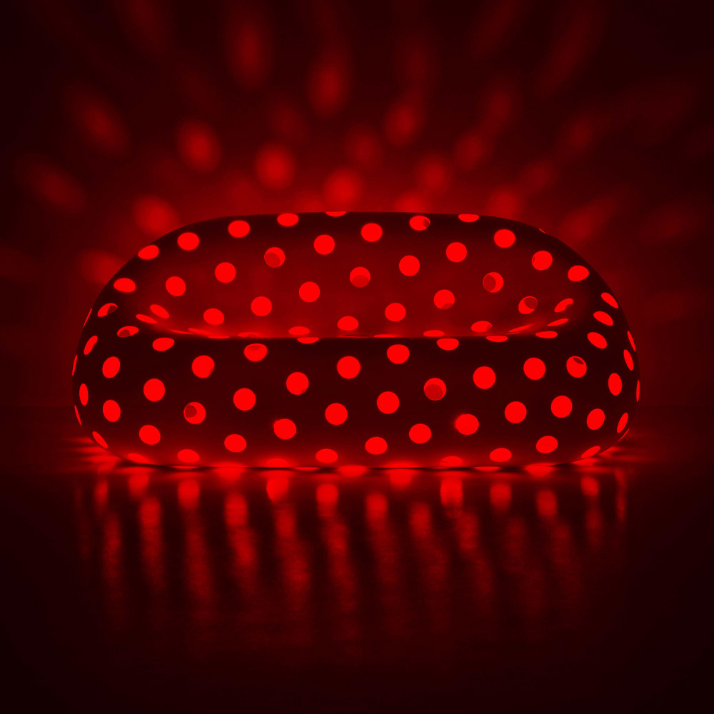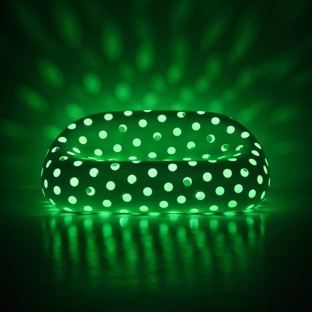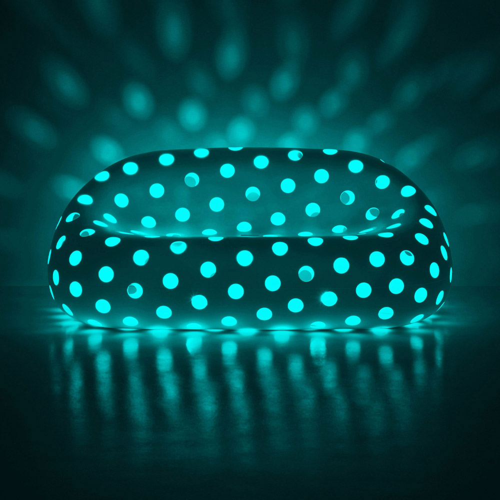 Sofá de jardín fabricado en Italia en polietileno blanco opaco completo con kit de luces LED RGB de colores para uso en exteriores. Una original idea de decoración cuya figura se caracteriza por líneas cómodas y modernas que, junto con la iluminación LED, le permiten convertirse en la combinación perfecta de funcionalidad y diseño . Su acabado mate lo hace especialmente resistente al sol, los golpes y el calor, además de extremadamente elegante y con una estética refinada. El diseño único e innovador que enfatiza las formas tiene un gran impacto escénico y lo hace ideal para ambientes al aire libre que necesitan una solución de decoración con fuerte personalidad. La superficie perforada confiere una ligereza sin precedentes al sofá, creando espectaculares juegos de luz gracias a la fuente de luz insertada en el interior.
