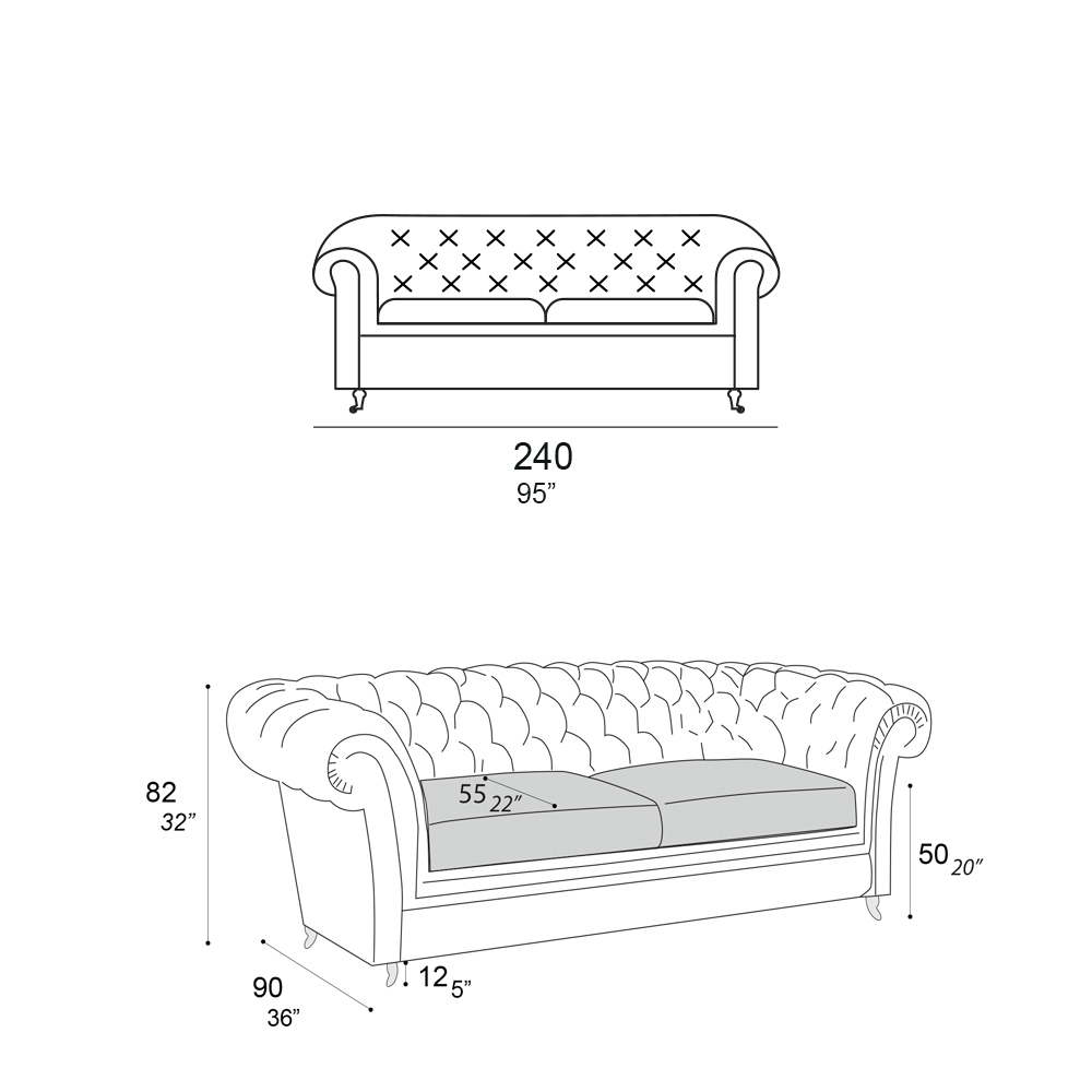 - Largo: 240 x Profundidad: 90 x Altura: 82 cm