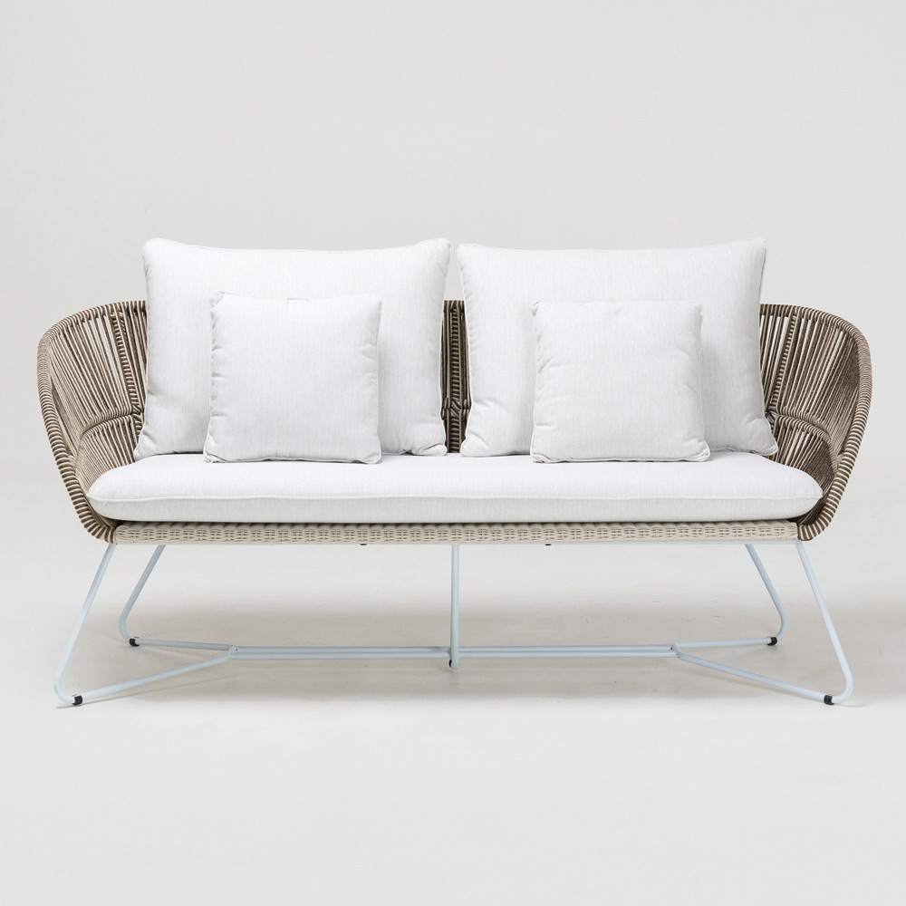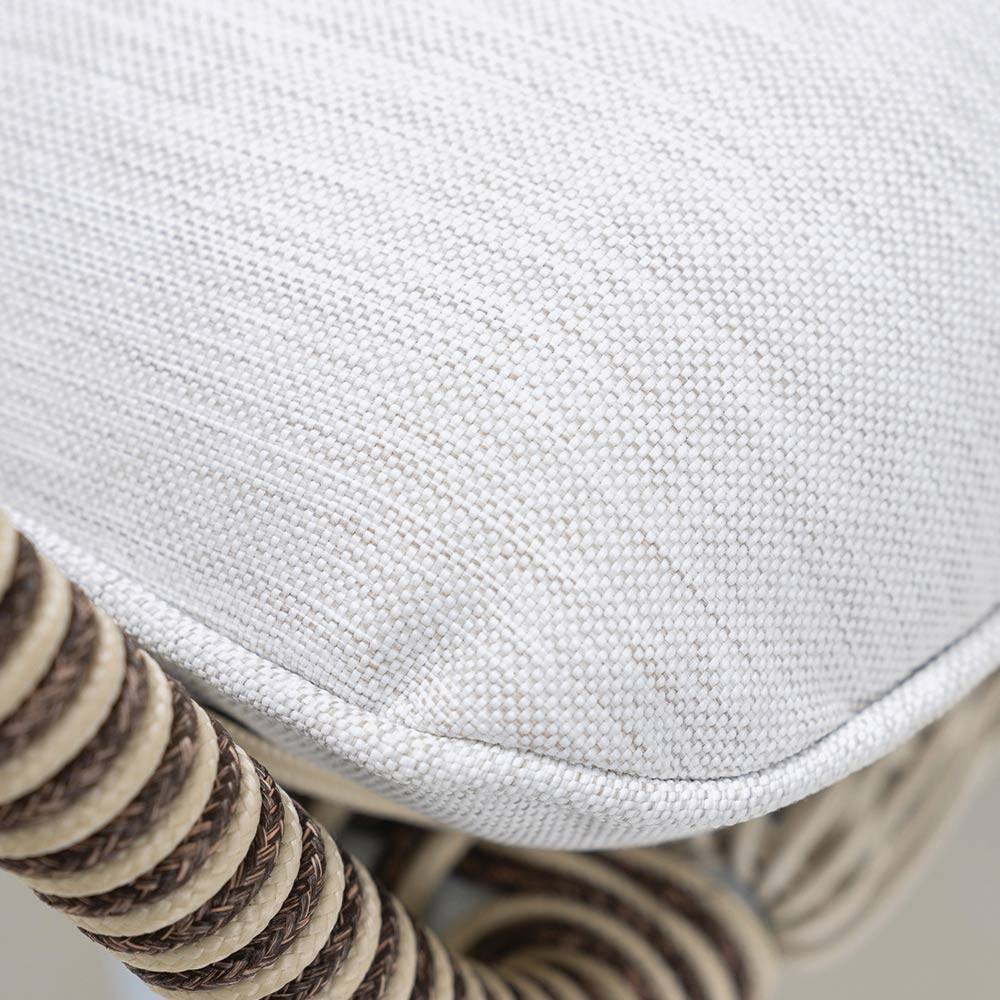 tejido de Olefina/PP ROPE con acabado bicolor blanco perla y capuchino y cojín de asiento y 2 cojines de respaldo en