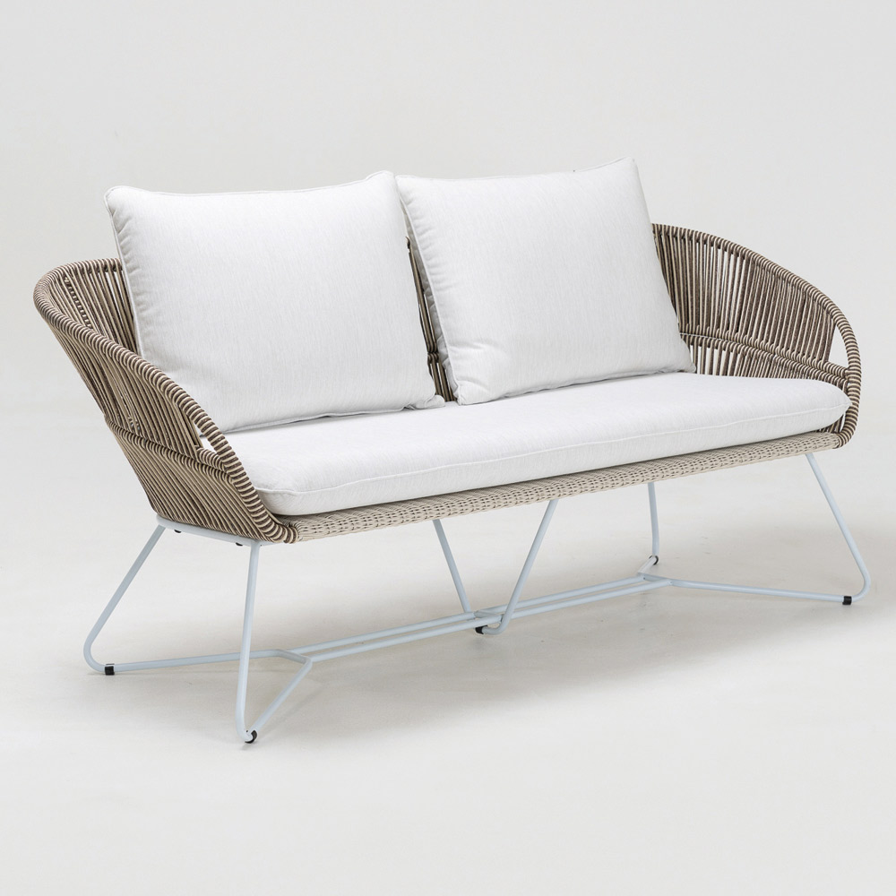 Sofá de jardín en aluminio, tejido en Olefina/PP ROPE y cojines