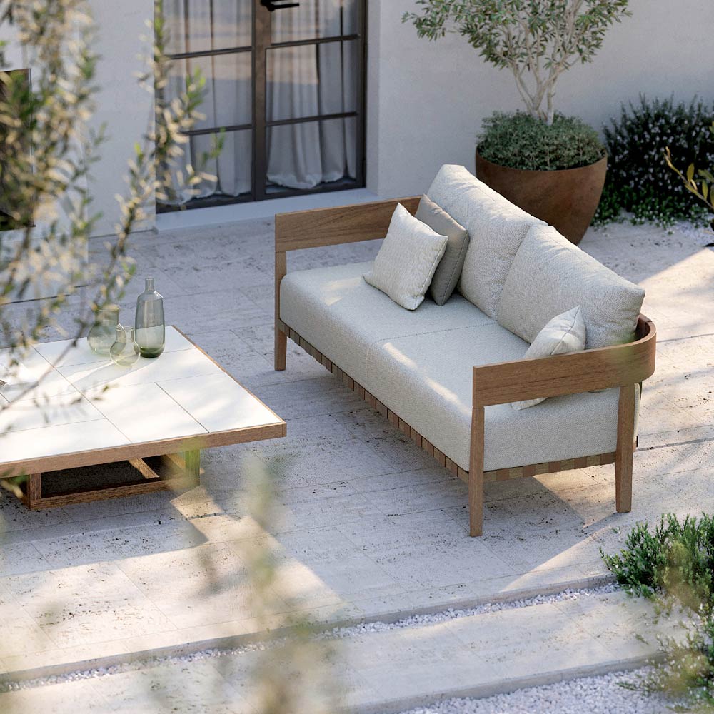 Sofá de jardín en madera de teca y tela fabricado en Italia - Briga