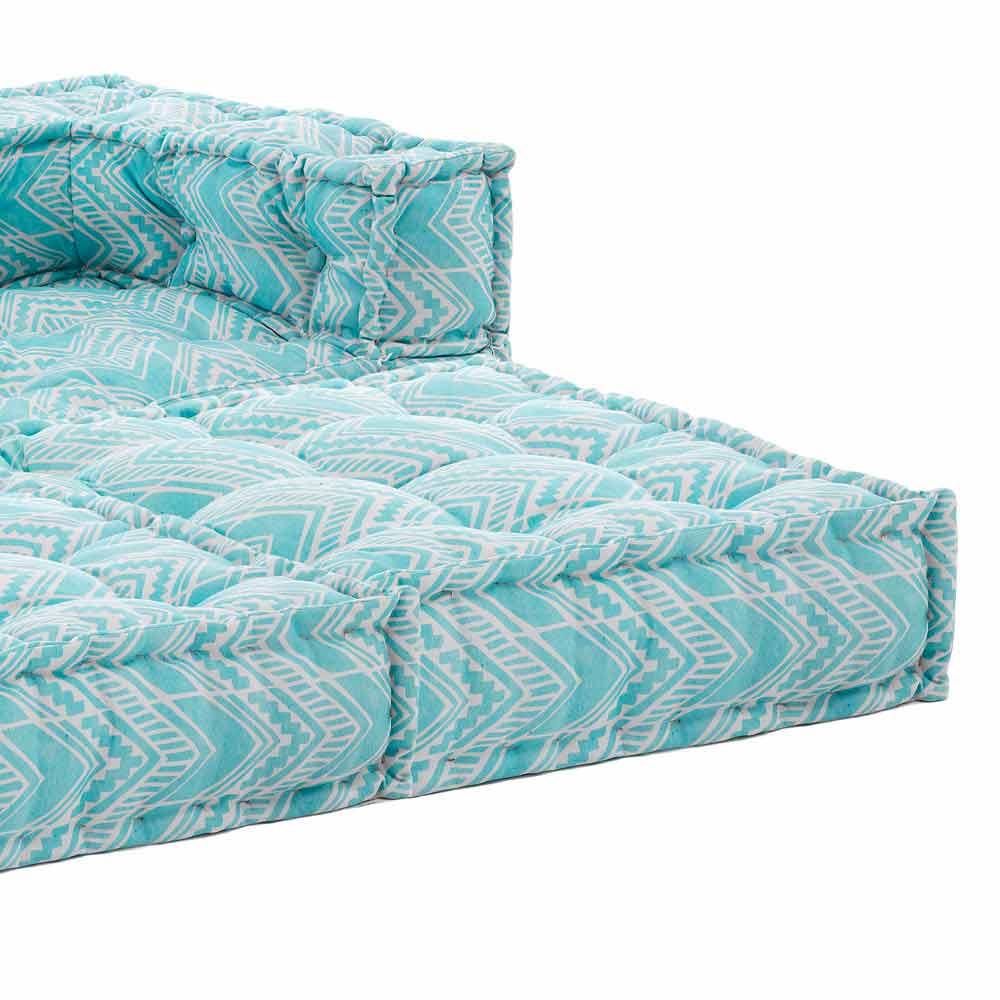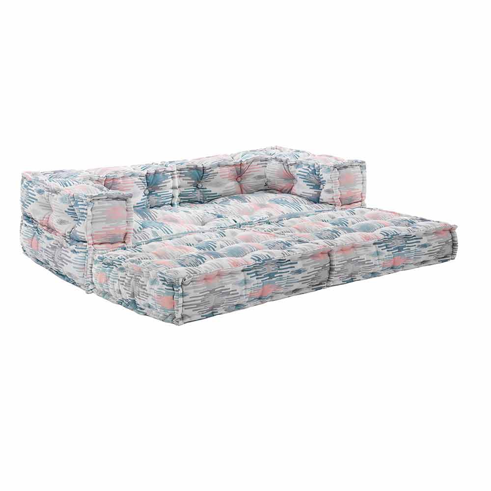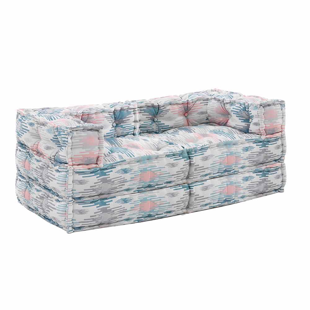 Sofá de jardín de dos plazas de diseño étnico en tela repelente al agua.