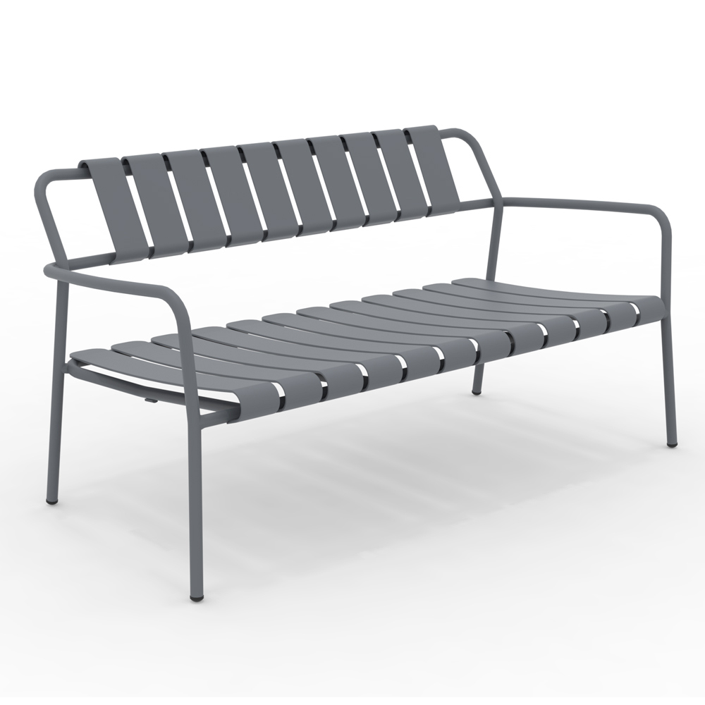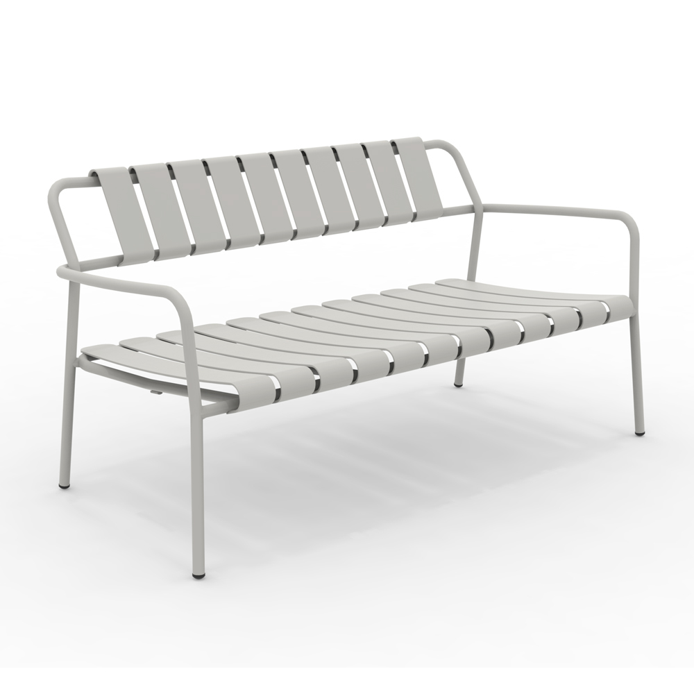 Este sofá de exterior de aluminio es la opción ideal para quienes buscan un mueble con un diseño contemporáneo y la máxima practicidad. Fabricado íntegramente en aluminio con recubrimiento en polvo , garantiza una resistencia excepcional a los agentes atmosféricos, ideal para jardines, terrazas y espacios contract como bares y restaurantes al aire libre.