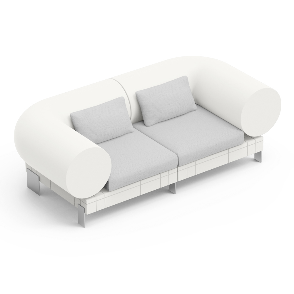Este sofá contemporáneo combina comodidad y diseño moderno en un mueble que llama la atención. Caracterizado por líneas limpias y una forma innovadora con cilindros laterales, el sofá ofrece un toque de estilo único y funcional . Su paleta de colores introduce un elemento de luminosidad y frescura en cada espacio habitable.