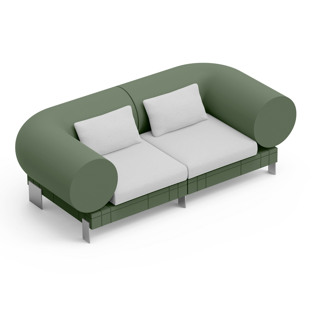 El sofá está sostenido por una fina base de metal que no sólo garantiza la estabilidad sino que añade un toque elegante y minimalista a todo el diseño. Los materiales de alta calidad garantizan durabilidad y comodidad , lo que lo hace perfecto para la relajación diaria.