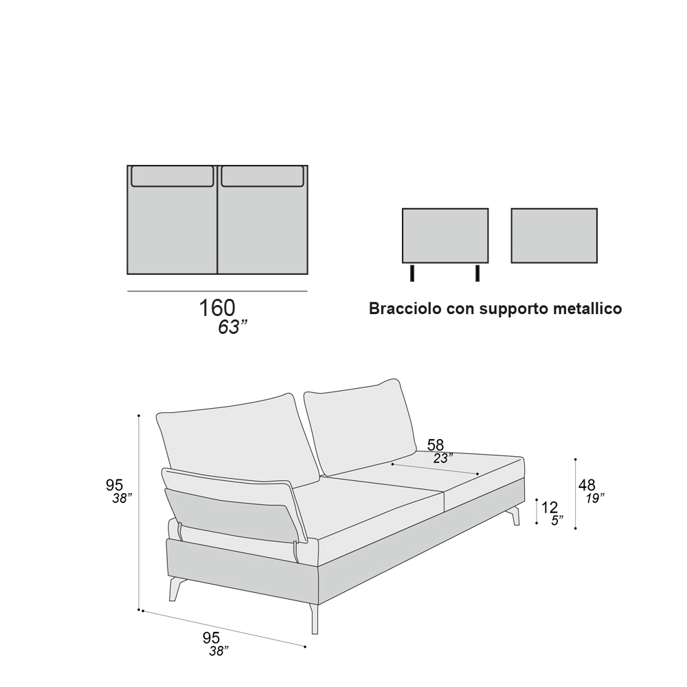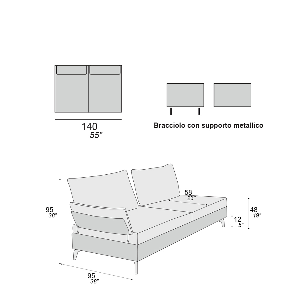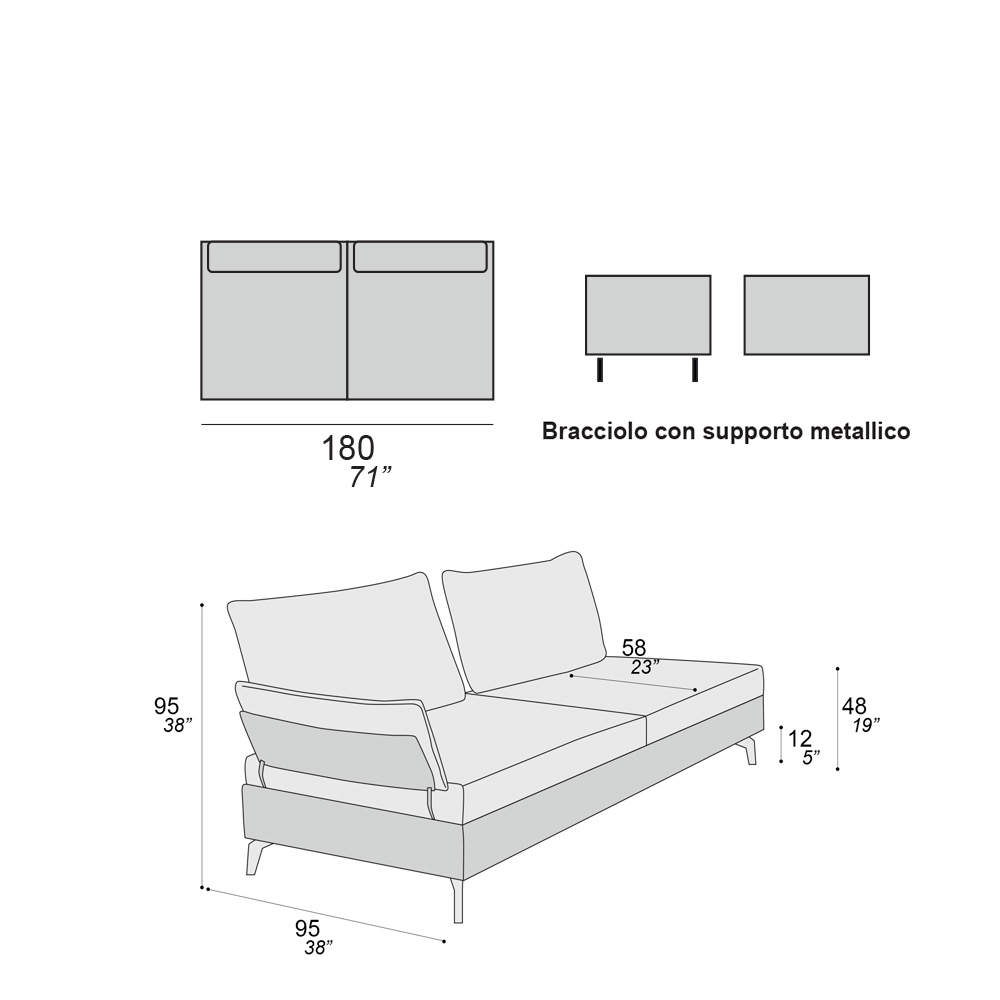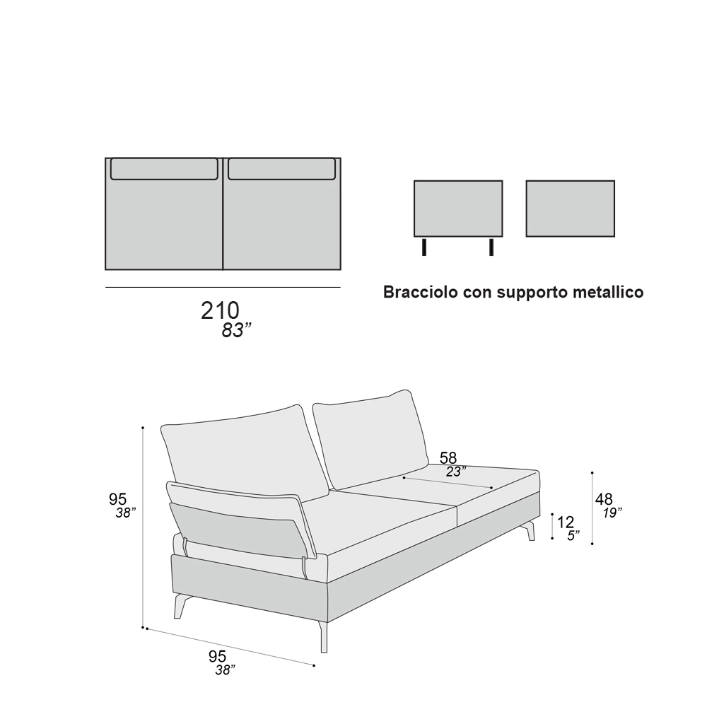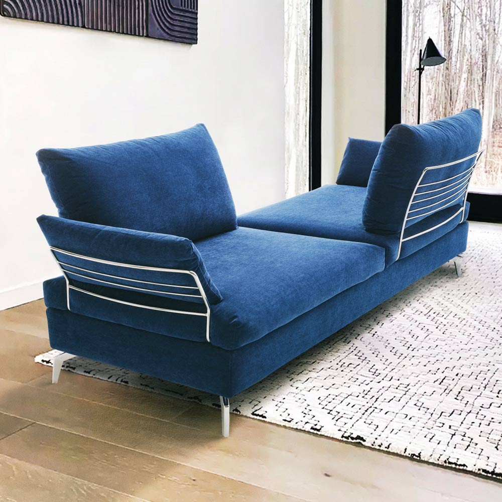soporte metálico. El sofá fue diseñado para fomentar buenas conversaciones con amigos y familiares. Su inconfundible linealidad y versatilidad, junto con los tapizados coloridos o más rigurosos, lo hacen adecuado para cualquier ocasión, casi como un vestido que pasa de formal a informal simplemente variando la composición elegida.