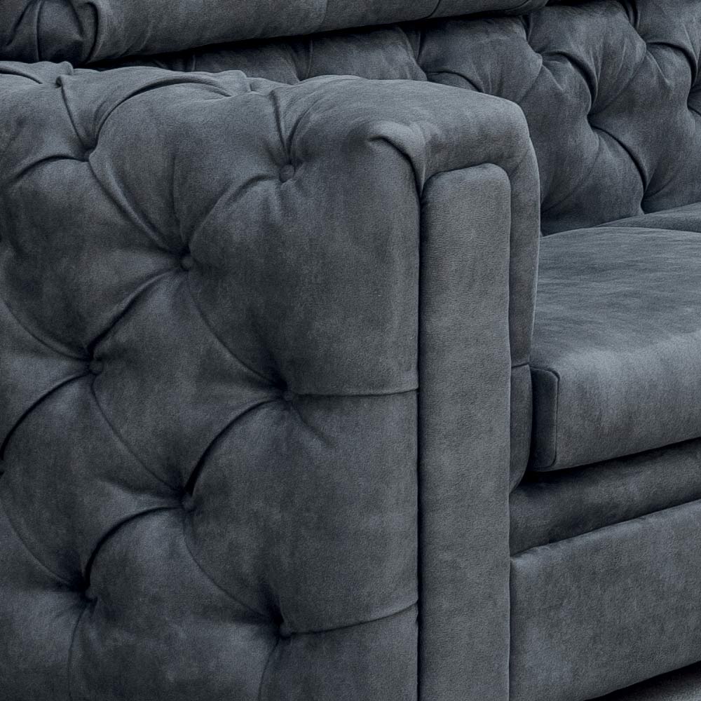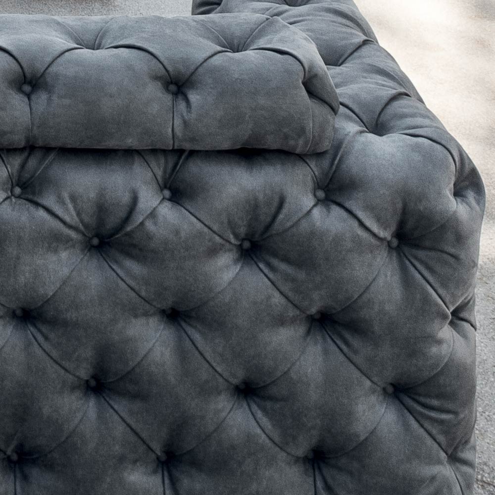 Sofá de salón realizado con estructura compuesta por madera maciza, contrachapado, aglomerado de madera y relleno con paneles de fibra de madera en bruto . El acolchado de la propia estructura es de espuma de poliuretano D.40de fibra de poliéster . Muelles con correas elásticas de elasticidad controlada montados en sistema cruzado. El cojín del asiento está fabricado en espuma de poliuretano de alta densidad , recubierto de terciopelo y resinado. El acolchado del respaldo es de espuma de poliuretano de alta densidad . Los pies son de madera de haya con acabado cerezo. El sofá es una pieza elegante y contemporánea. Su estructura es robusta y refinada, con líneas limpias y geométricas que lo convierten en un elemento de diseño sofisticado. El tapizado de tela de alta calidad enriquece el aspecto general y promete un asiento cómodo. Los cojines suaves y acogedores invitan a los momentos de relajación. Es una elección perfecta para quienes desean combinar funcionalidad y estilo en un ambiente moderno.