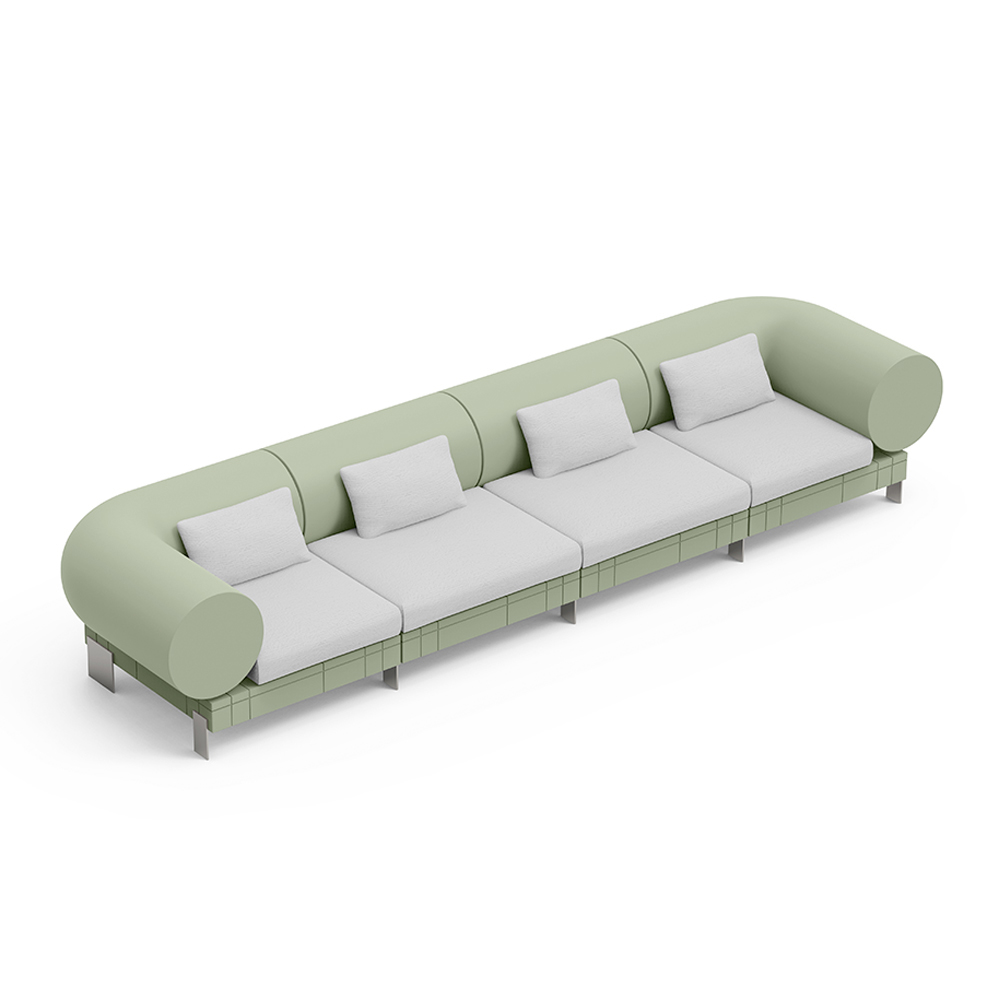 El sofá está sostenido por una fina base de metal que no sólo garantiza la estabilidad sino que añade un toque elegante y minimalista a todo el diseño. Los materiales de alta calidad garantizan durabilidad y comodidad , lo que lo hace perfecto para la relajación diaria.
