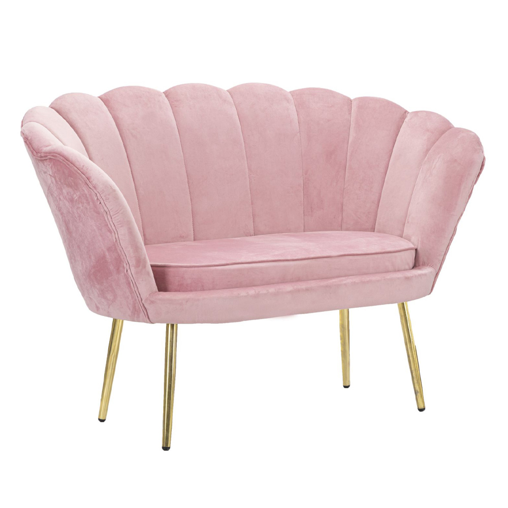 Sofá de 2 plazas con estructura interna de madera acolchada en esponja con pies de hierro en acabado dorado y asiento tapizado en terciopelo. Elegancia y personalidad se unen en un solo producto y dan vida a este maravilloso sofá de alma sofisticada . La forma redondeada del respaldo garantiza un asiento acogedor y especialmente cómodo . La combinación de acabados elegidos enriquece la estética ya refinada del producto con un toque exclusivo y refinado, ideal para amueblar áreas de estar con un gusto y estilo estético contemporáneo.