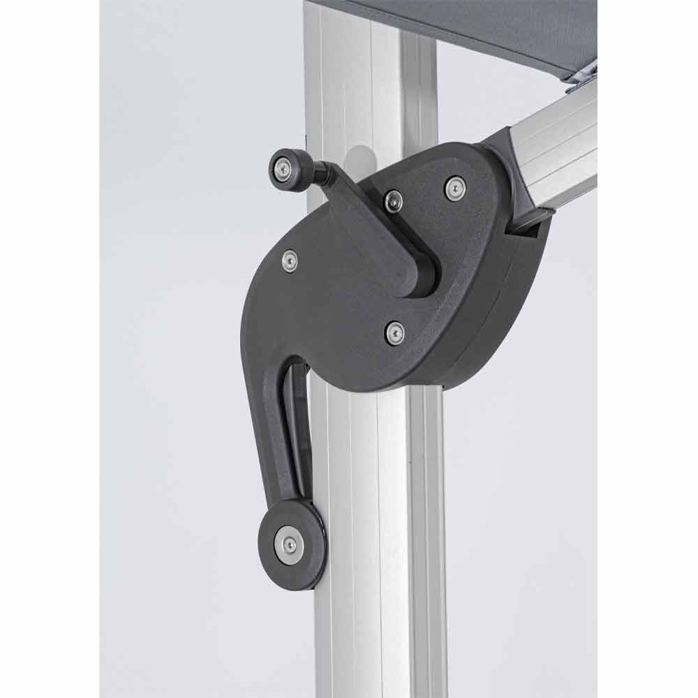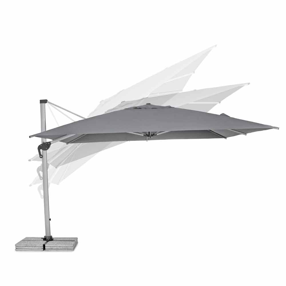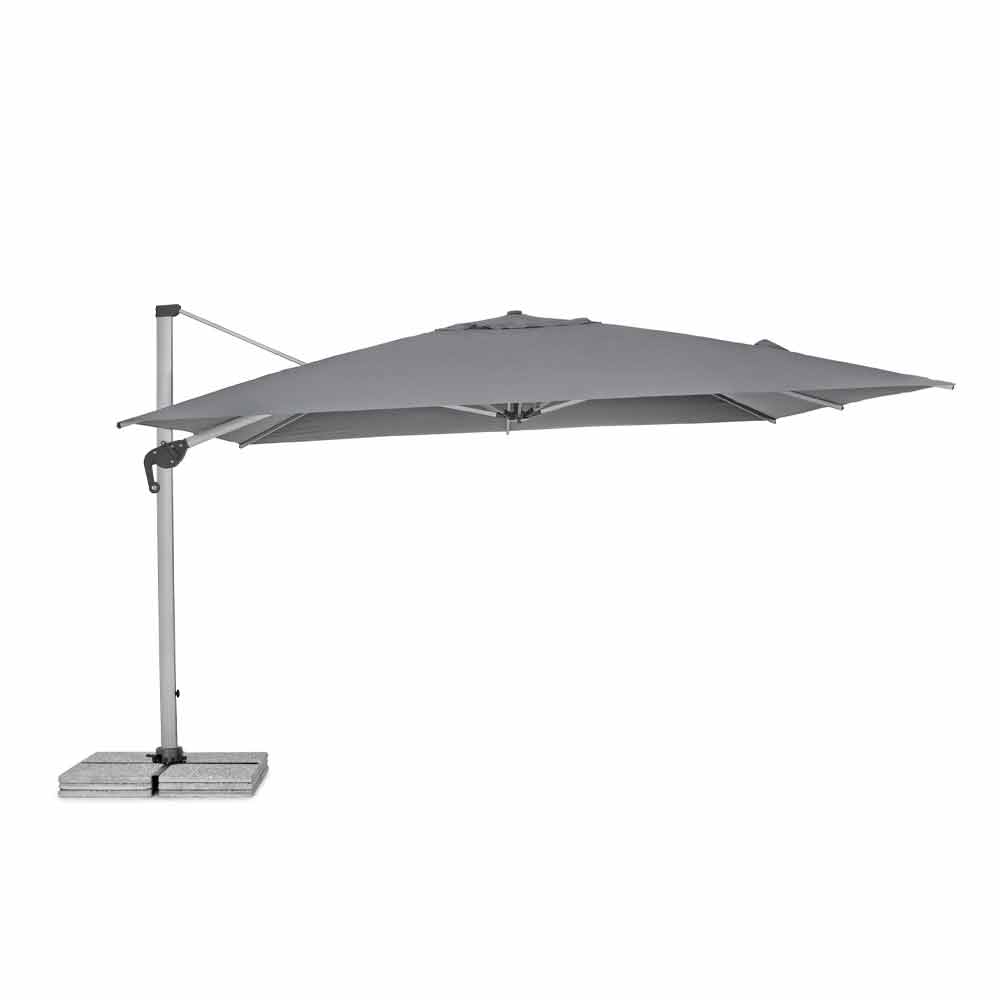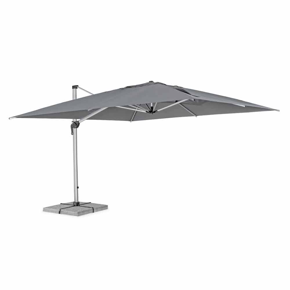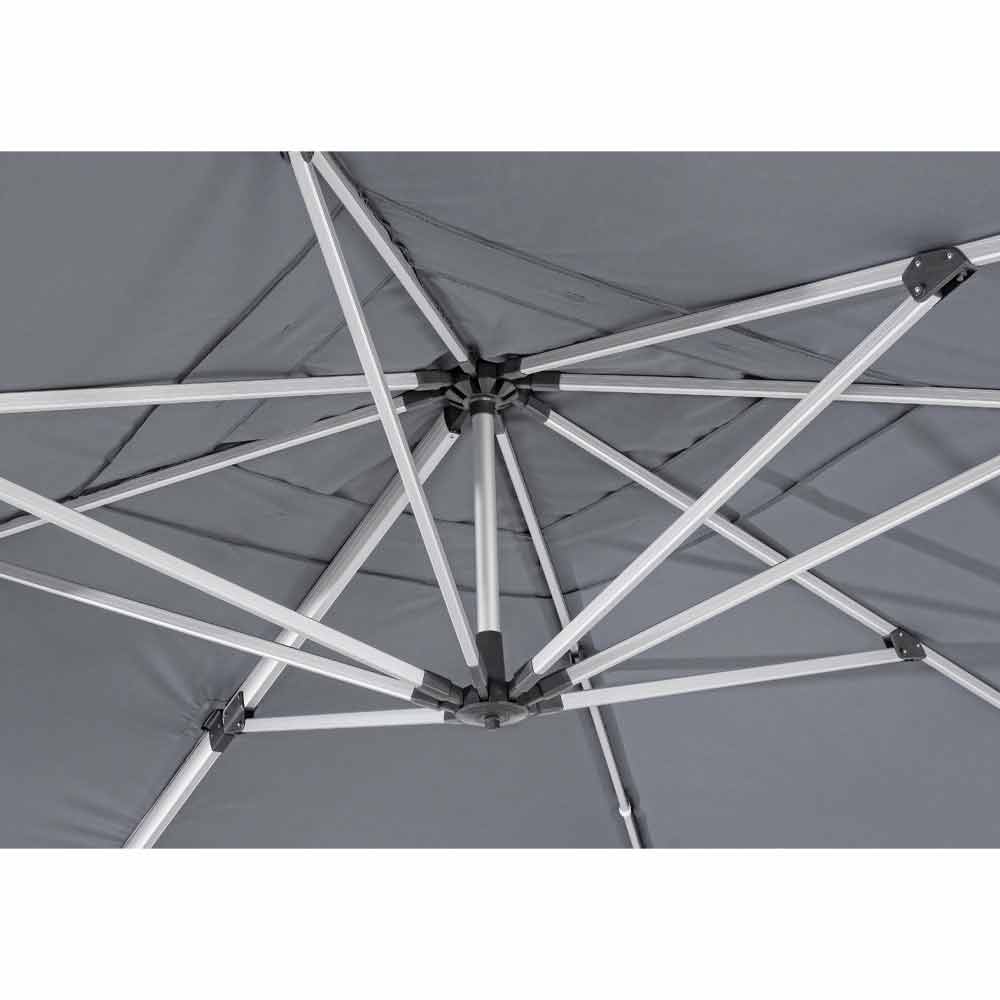 Sombrilla 4x4 en poliéster gris y aluminio anodizado.