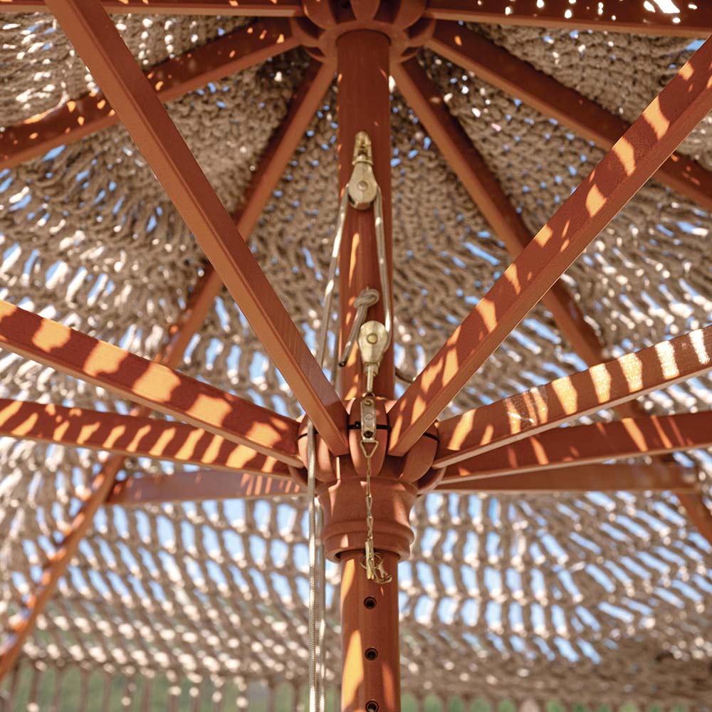Esta sombrilla combina estilo natural y encanto artesanal , convirtiéndola en la pieza central perfecta para playas, piscinas o terrazas de estilo mediterráneo. El mástil de madera de Ø 48/8 mm irradia calidez y autenticidad, mientras que las varillas de 17 x 35 mm garantizan solidez y estabilidad a lo largo del tiempo.